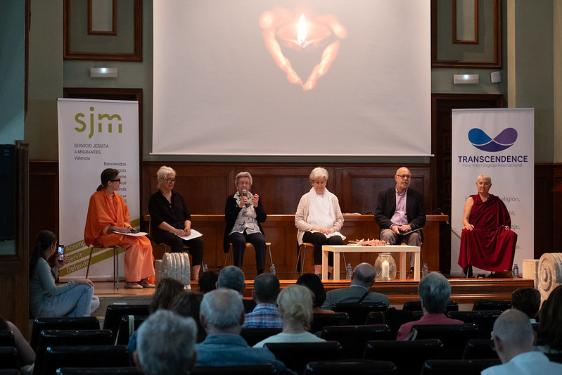 Swamini Dayananda participó en la Oración Contemplativa del Foro Interreligioso Internacional TRANSCENDENCE (FIIT), que en esta ocasión se realizó presencialmente en el salón de actos del Centro Arrupe de los Jesuitas en la Capital Valenciana. En ella miembros del FIIT y representantes de distintas tradiciones religiosas presentaron los diferentes enfoques que cada una de dichas tradiciones ofrecen sobre la hospitalidad.