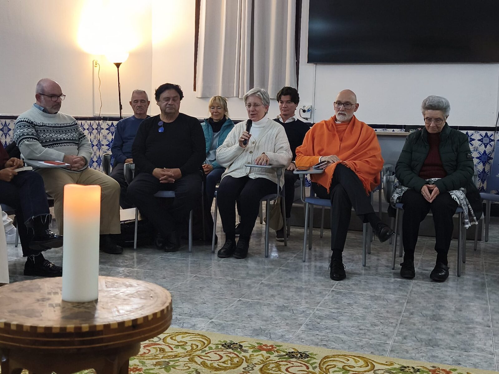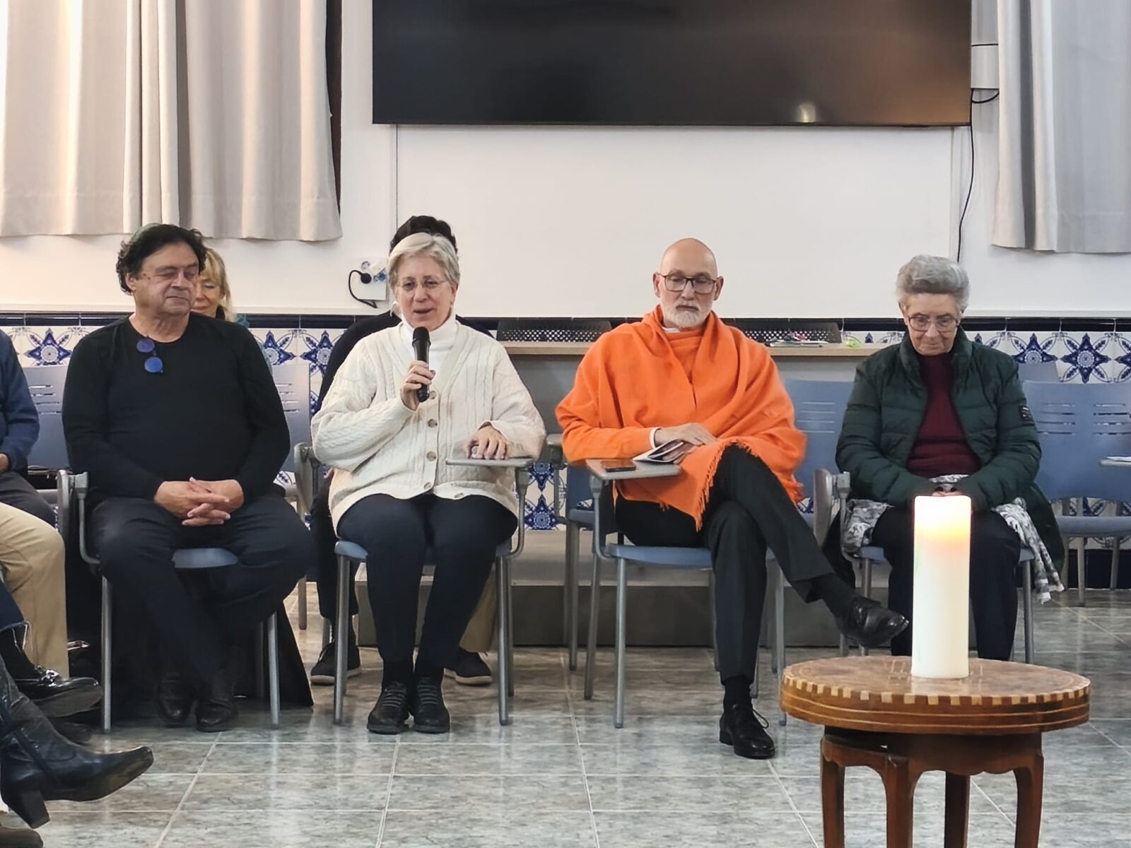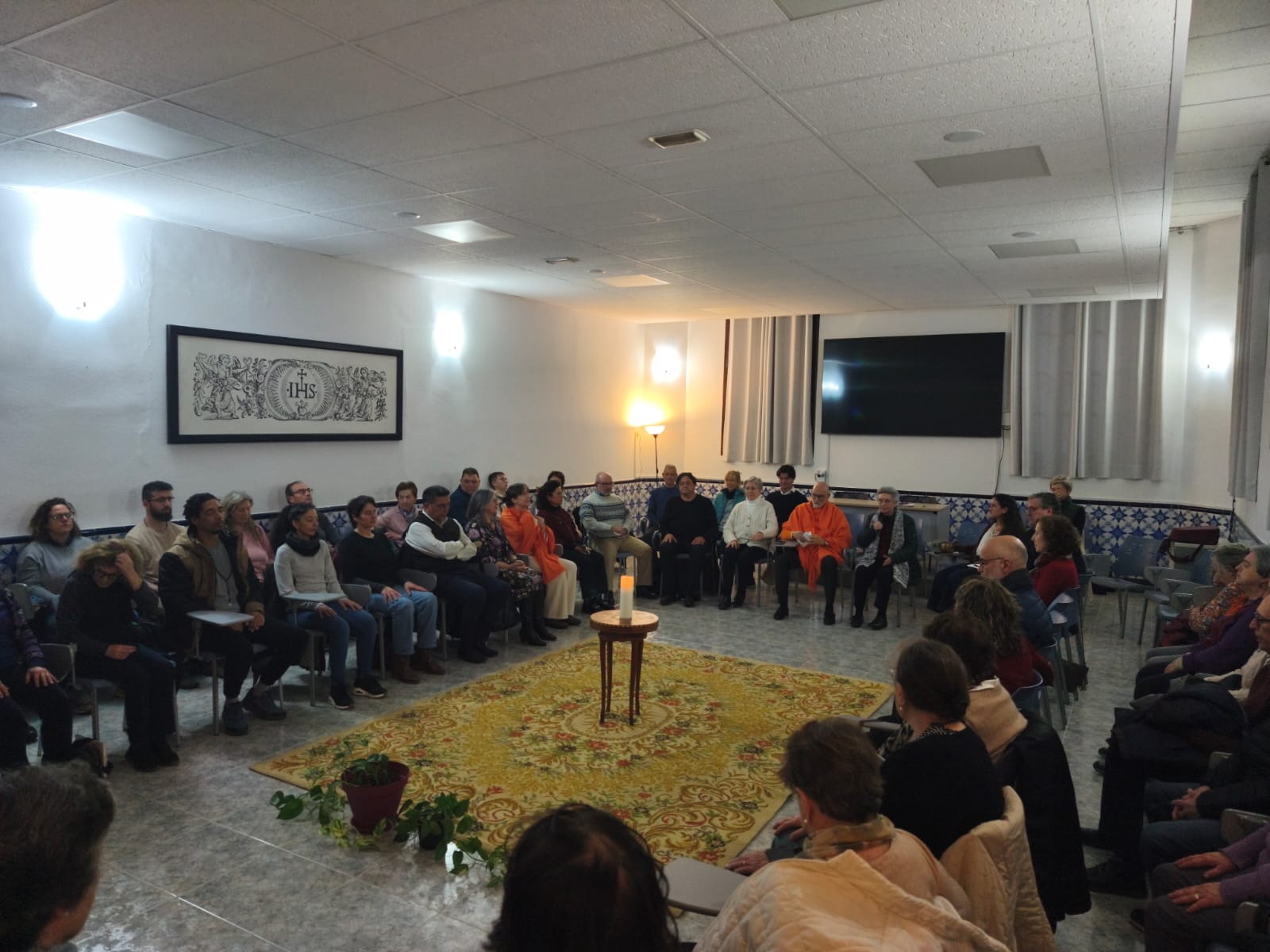 En el marco de la Semana Mundial de la Armonía Interconfesional, el pasado 4 de febrero, el Centro Arrupe de los jesuitas de Valencia acogió un Círculo de Silencio y Oración Interreligiosa por la Paz, organizado por el Foro Interreligioso Internacional Transcendence (FIIT), que contó con la presencia de H.E. Pujya Swami Rameshwarananda Giri, acompañado por Swamini Dayananda Giri.