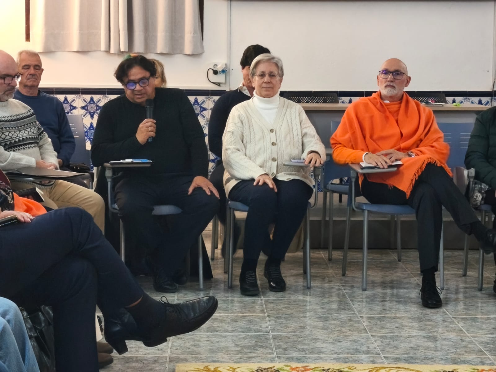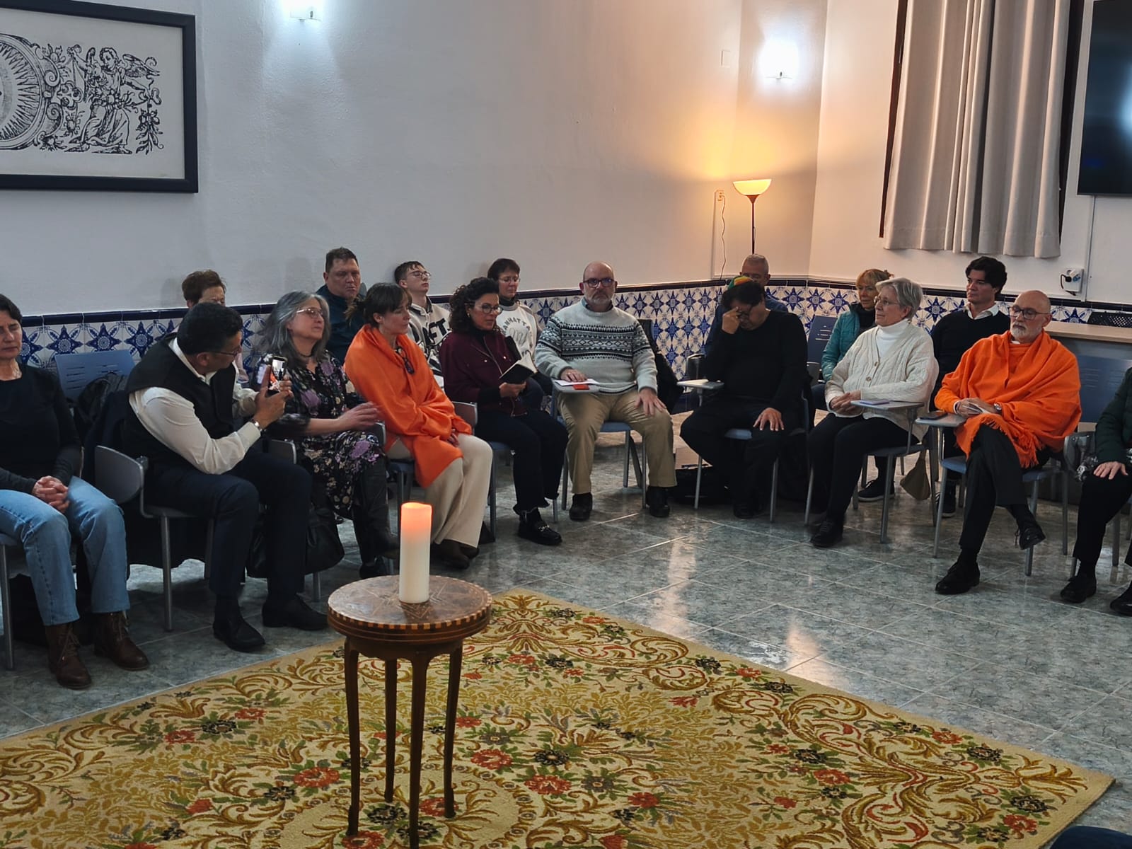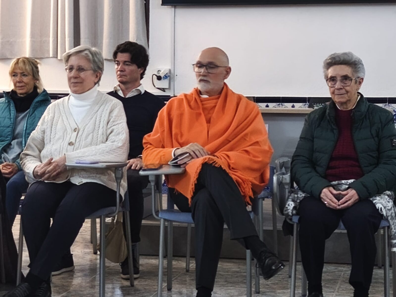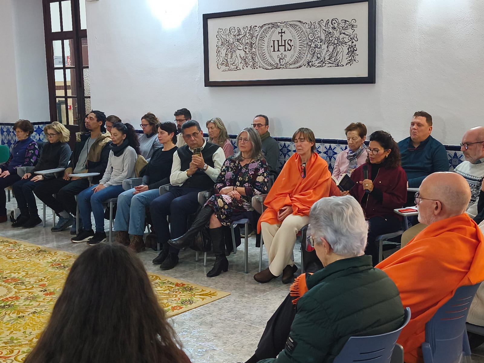 En el marco de la Semana Mundial de la Armonía Interconfesional, el pasado 4 de febrero, el Centro Arrupe de los jesuitas de Valencia acogió un Círculo de Silencio y Oración Interreligiosa por la Paz, organizado por el Foro Interreligioso Internacional Transcendence (FIIT), que contó con la presencia de H.E. Pujya Swami Rameshwarananda Giri, acompañado por Swamini Dayananda Giri.