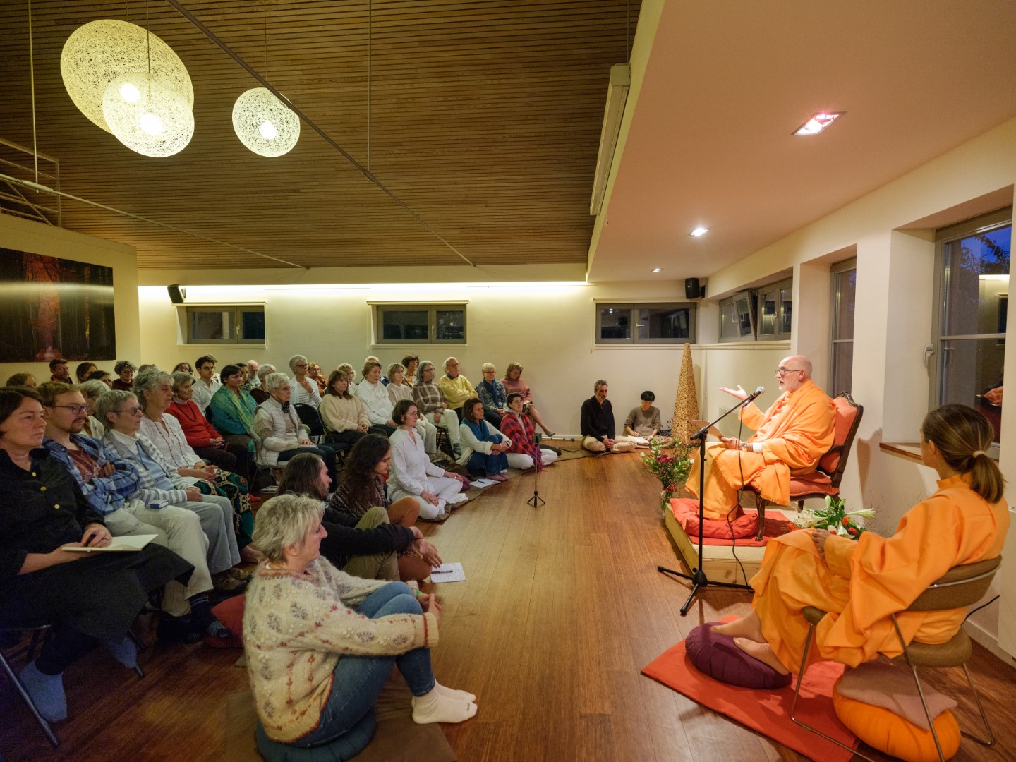 El pasado 26 de octubre de 2023, H.E. Pujya Swami Rameshwarananda Giri Maharaj ofreció una conferencia en el Centre Pérou de Bruselas. Al acto, que tuvo lugar en la gran sala de este centro, asistieron unas 70 personas que siguieron con atención las explicaciones sobre la importancia de la muerte como elemento catalizador de la atención. La conferencia fue seguida por una meditación que permitió a los asistentes poner en práctica las enseñanzas del Swami, que con su estilo ameno y claro, es capaz de acercar a público novel temas espirituales y transcendentales de importancia.