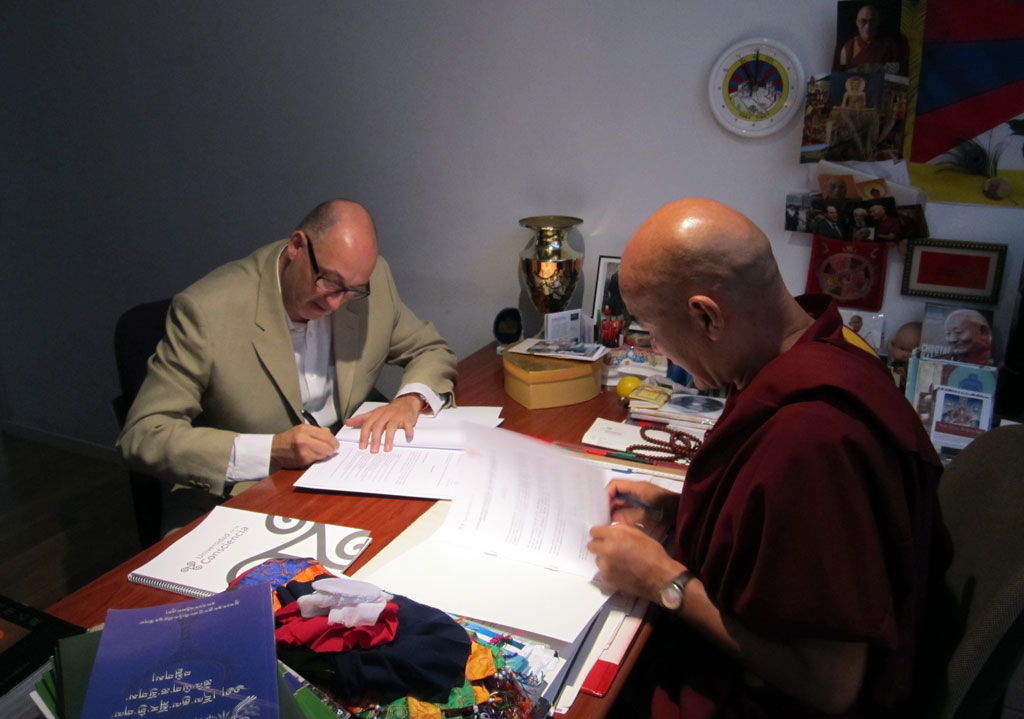 El 6 de septiembre de 2013, en el marco del Proyecto Universidad de la Consciencia, Fundación Phi, firma un convenio de colaboración con la Fundació Casa del Tibet de Barcelona, que tiene por objeto el hermanamiento entre ambas instituciones en el desarrollo, difusión y práctica de la Filosofía, el Yoga y la Meditación, mediante diferentes actividades organizadas al efecto y que con carácter meramente enunciativo y no limitativo, se enumeran a continuación: