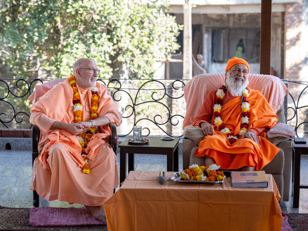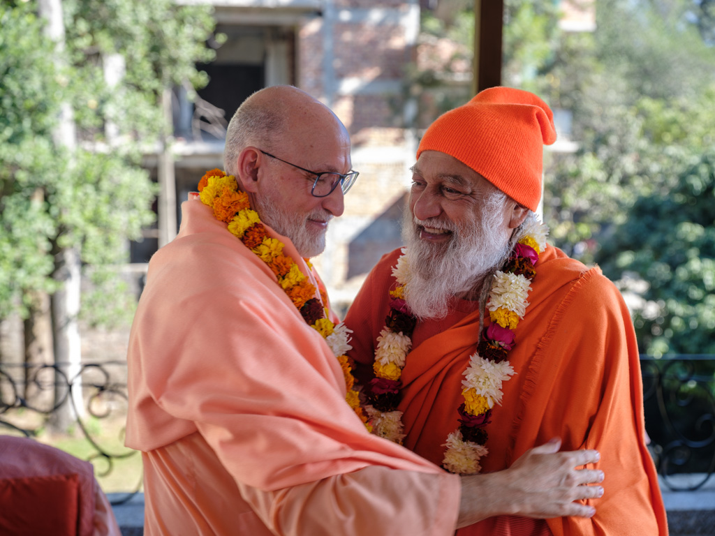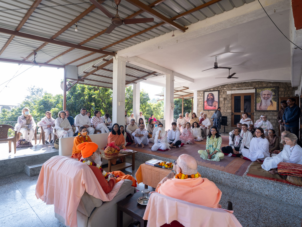 El pasado 4 de diciembre, H.H. Sri Shiva Rudra Balayogi recibió en su Ashram de Dehradun, India, a H.E. Pujya Swami Rameshwarananda Giri Maharaj junto a Swamini Dayananda Giri y los 40 alumnos de la Escuela PHI de Yoga Vedanta y Meditación de la Universidad de la Consciencia que le acompañaban.