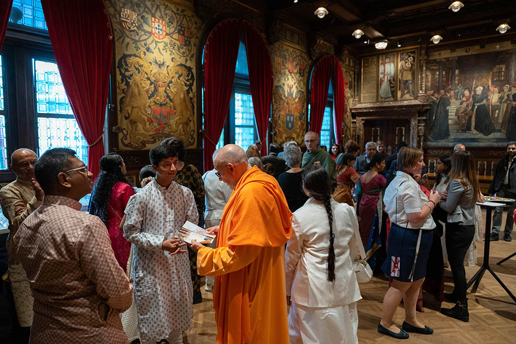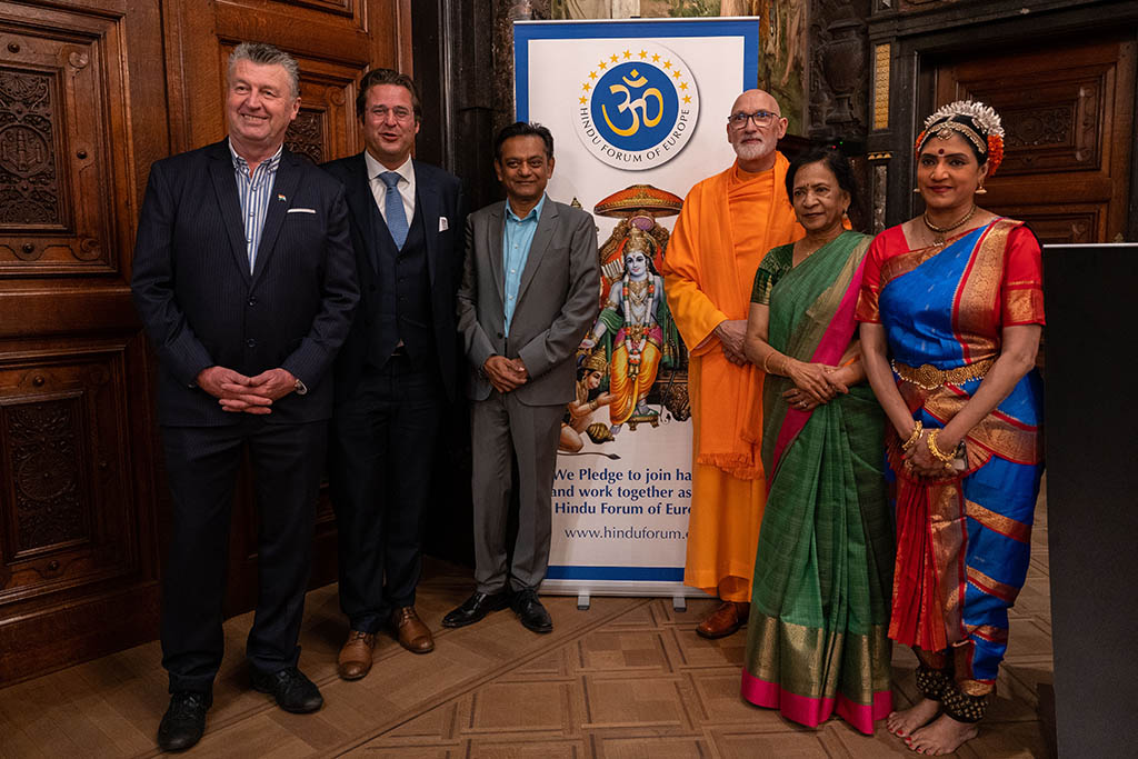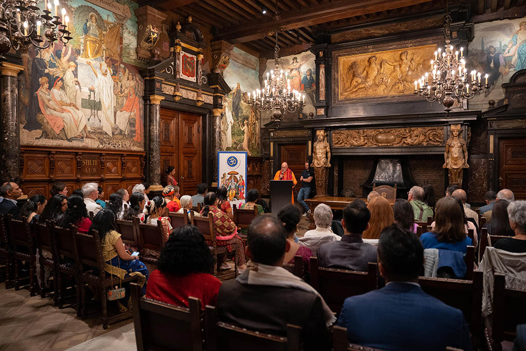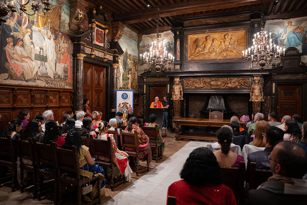 El acto, que tuvo lugar en uno de los históricos salones del ayuntamiento de la capital flamenca, reunió a varios embajadores, la presidenta y miembros del Consejo del HFE, representantes de las distintas federaciones del HFE, numerosos representantes de la comunidad hindú de Europa, representantes de algunas de las tradiciones religiosas de la India, así como representantes institucionales y políticos de la ciudad.
