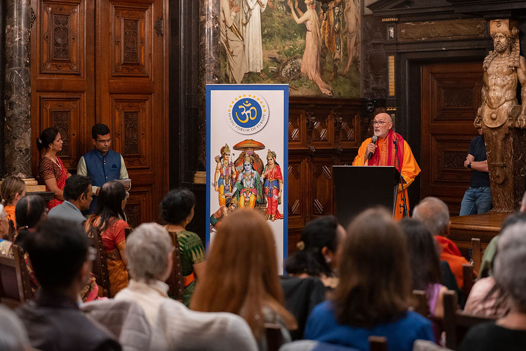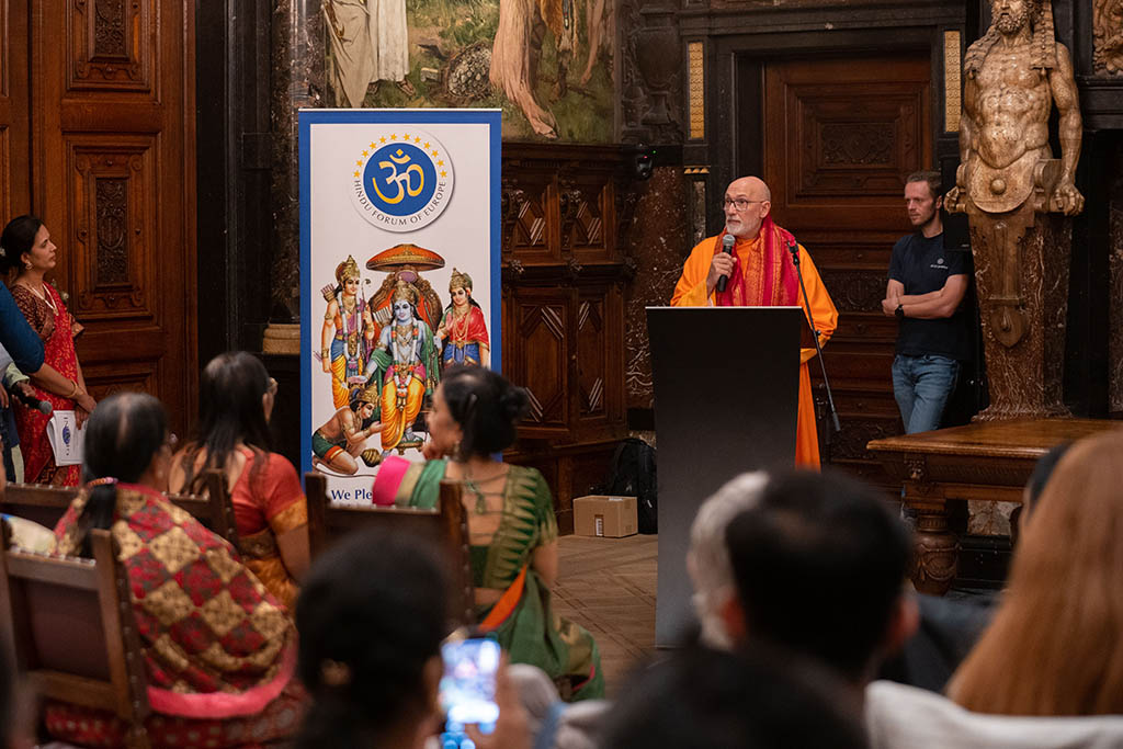 En referencia a la construcción de Europa destacó que “las enseñanzas y valores del hinduismo, basados en la no violencia, la verdad y el respeto por todas las formas de vida, son fundamentales para construir una sociedad más inclusiva y en paz.” “El hinduismo ha llegado para quedarse”, afirmó, “y nuestra contribución al engrandecimiento espiritual y cultural de Europa será duradera.”
