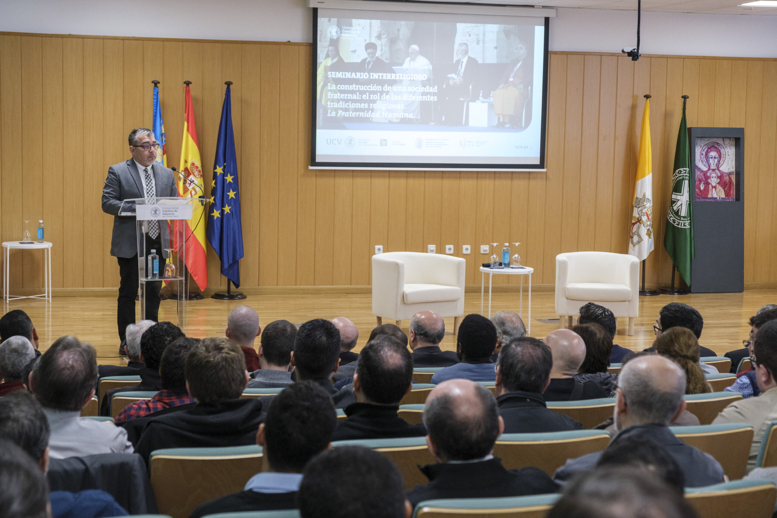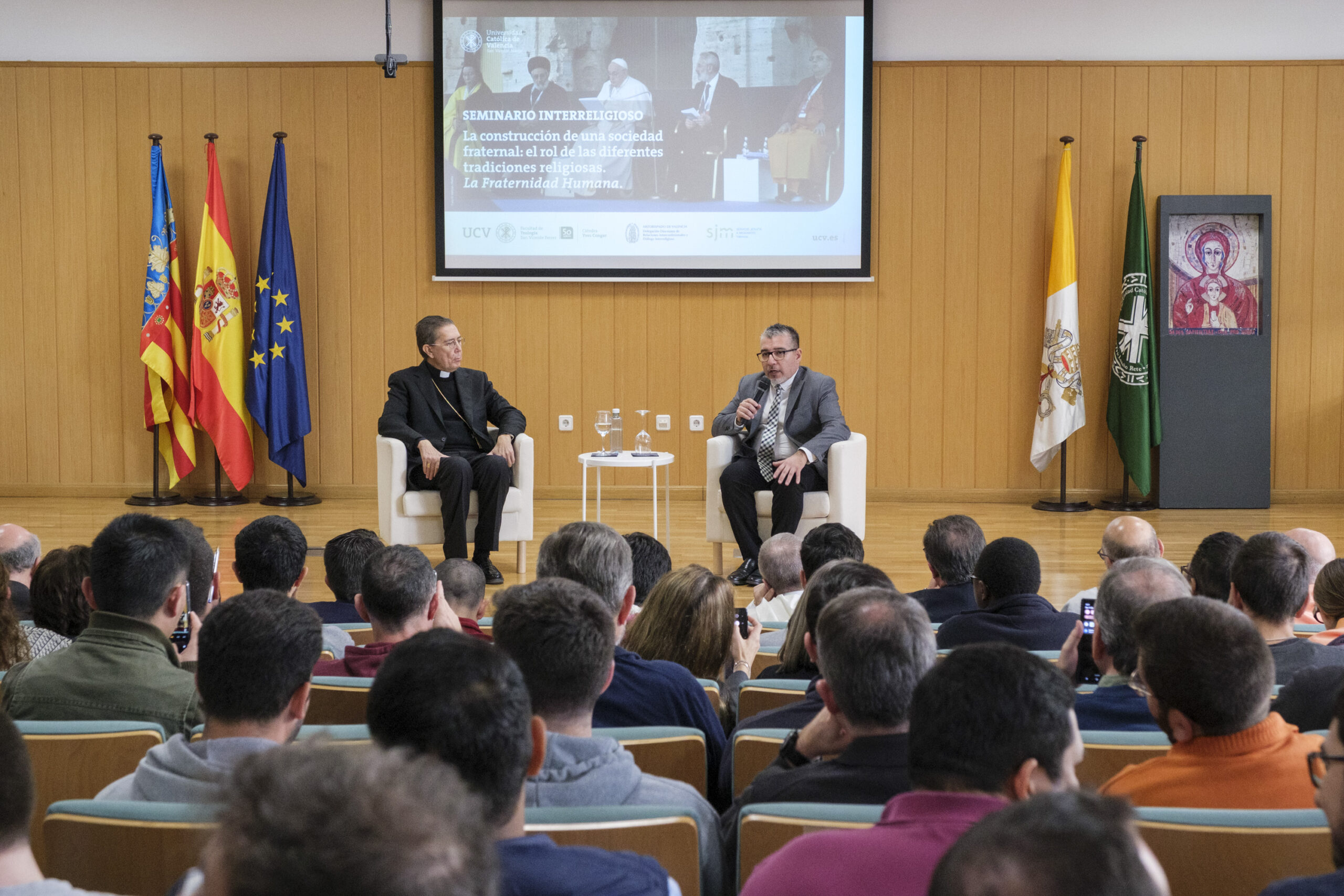 El acto fue organizado por la Cátedra Yves Congar de la Facultad de teología San Vicente Ferrer (Universidad Católica de Valencia), la Delegación Diocesana de Relaciones Interconfesionales y Diálogo Interreligioso y el Servicio Jesuita a Migrantes (SJM).