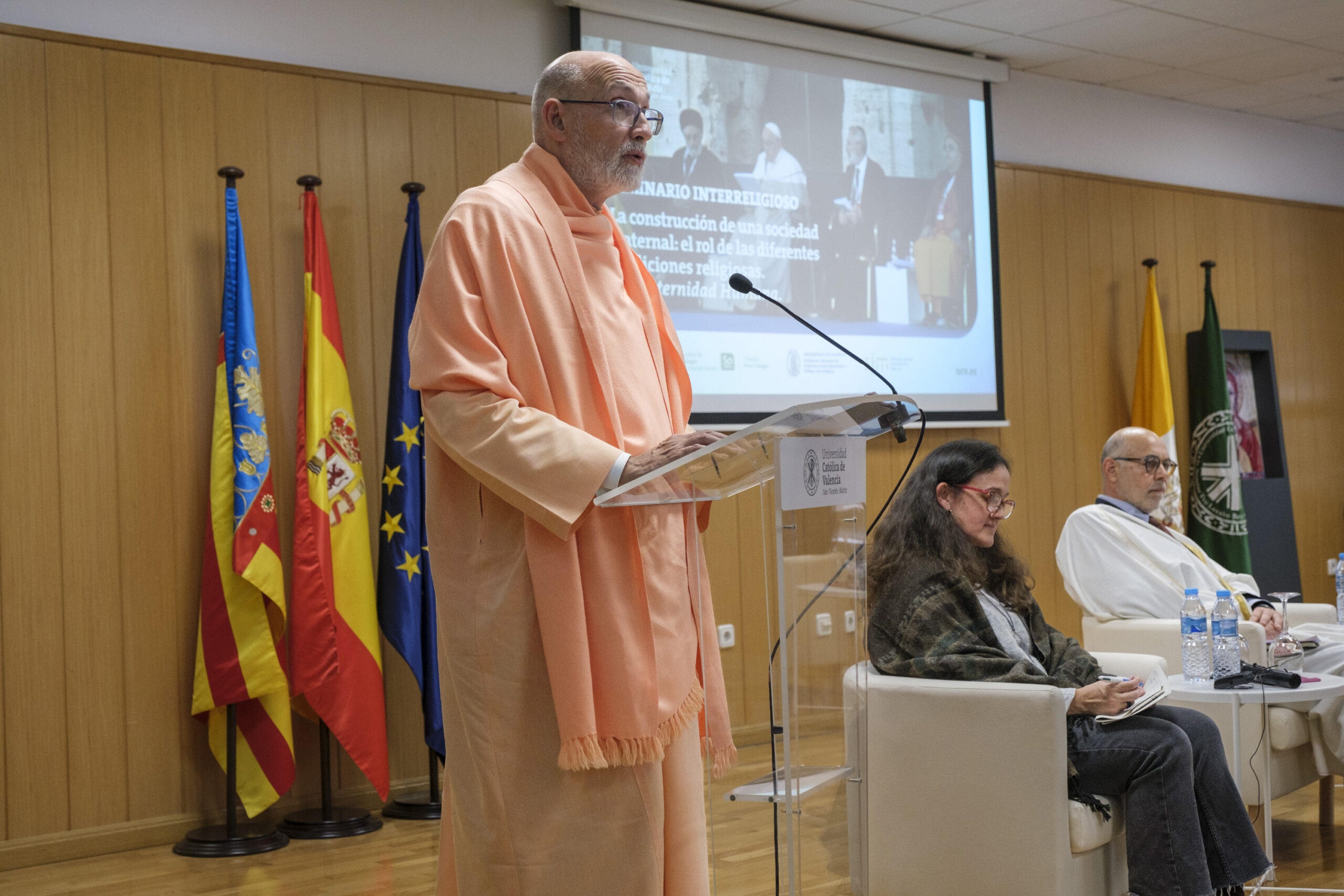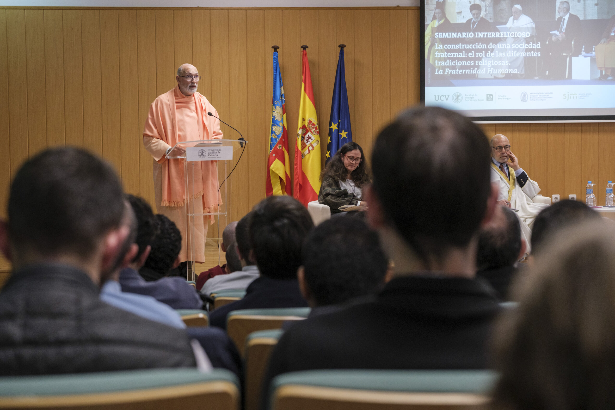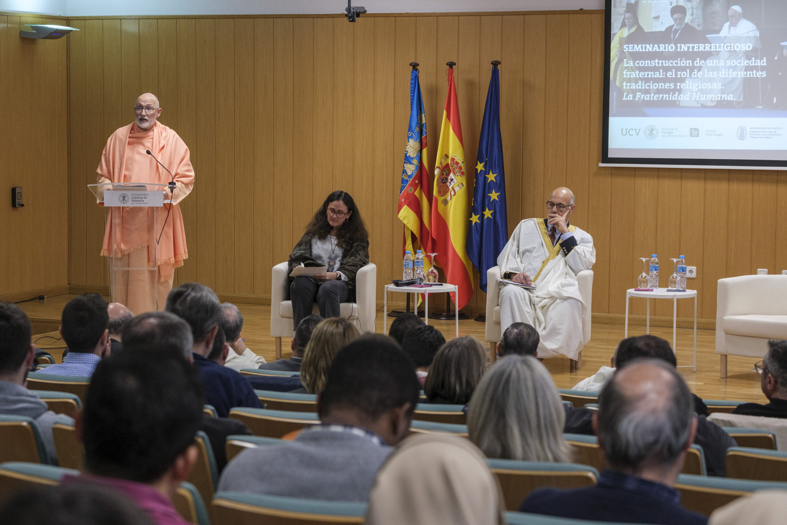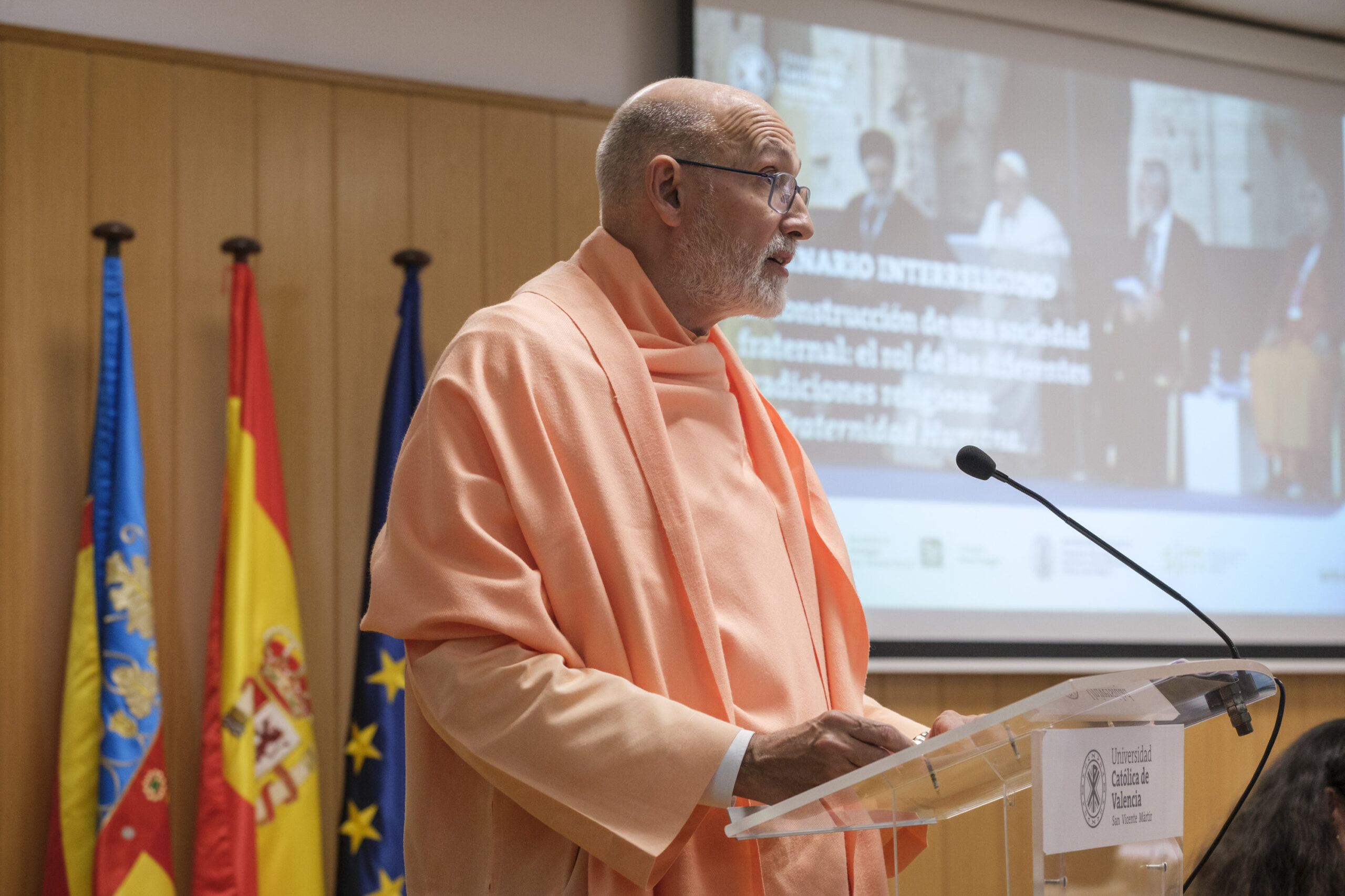 El pasado 11 de diciembre de 2023, H.E. Pujya Swami Rameshwarananda Giri Maharaj, participó en el Seminario Interreligioso “La construcción de una sociedad fraternal: El rol de las diferentes tradiciones religiosas” en la Universidad Católica de Valencia San Vicente Mártir.