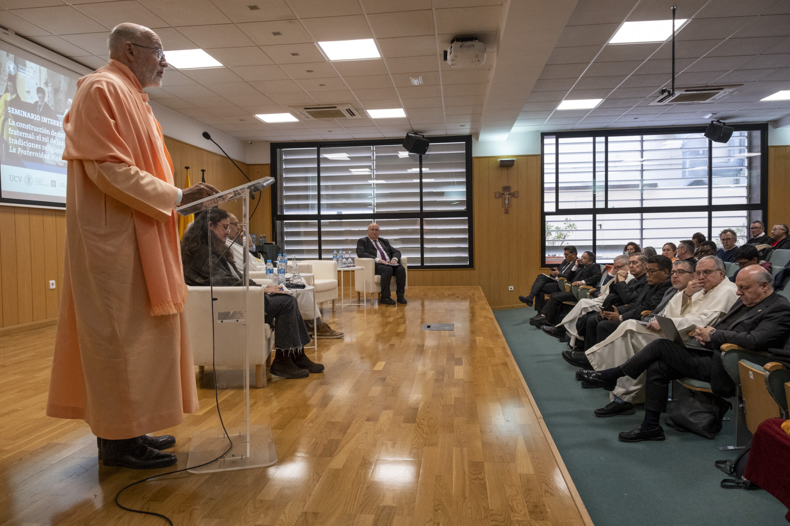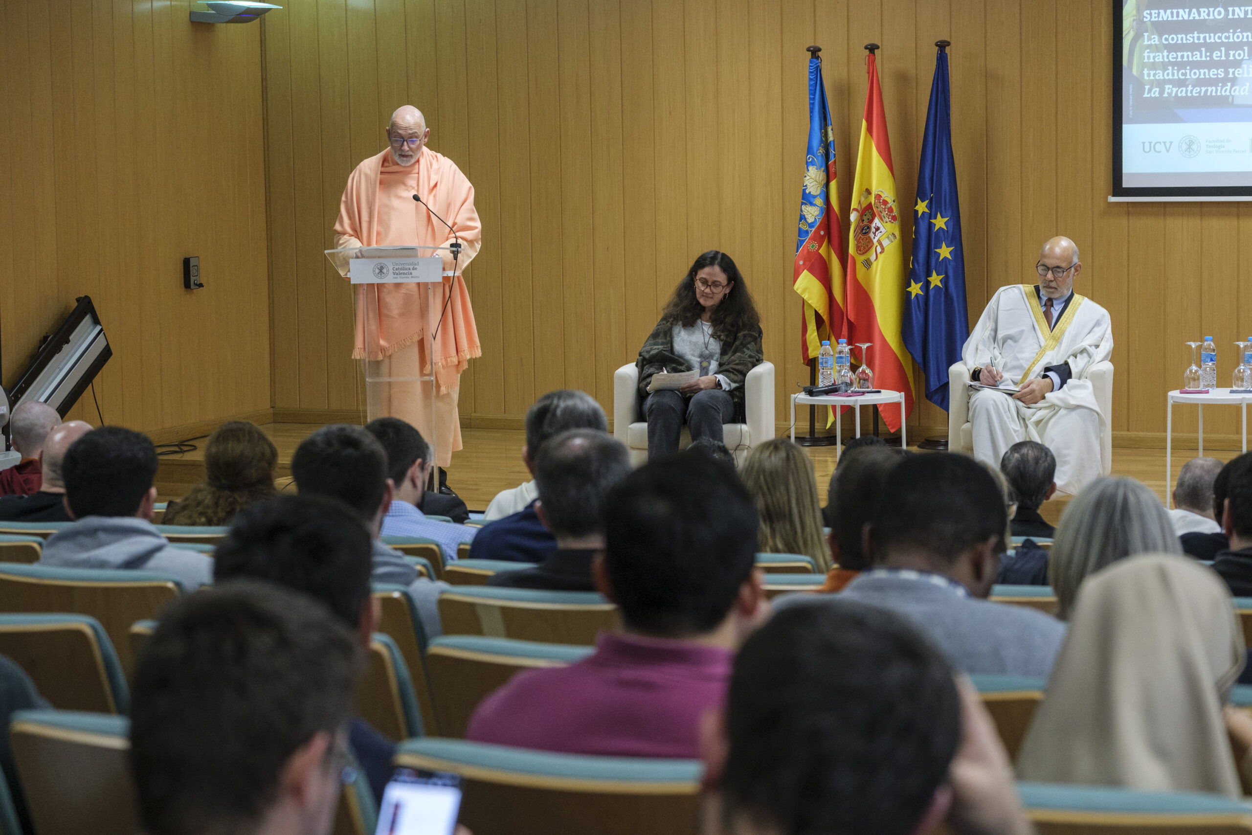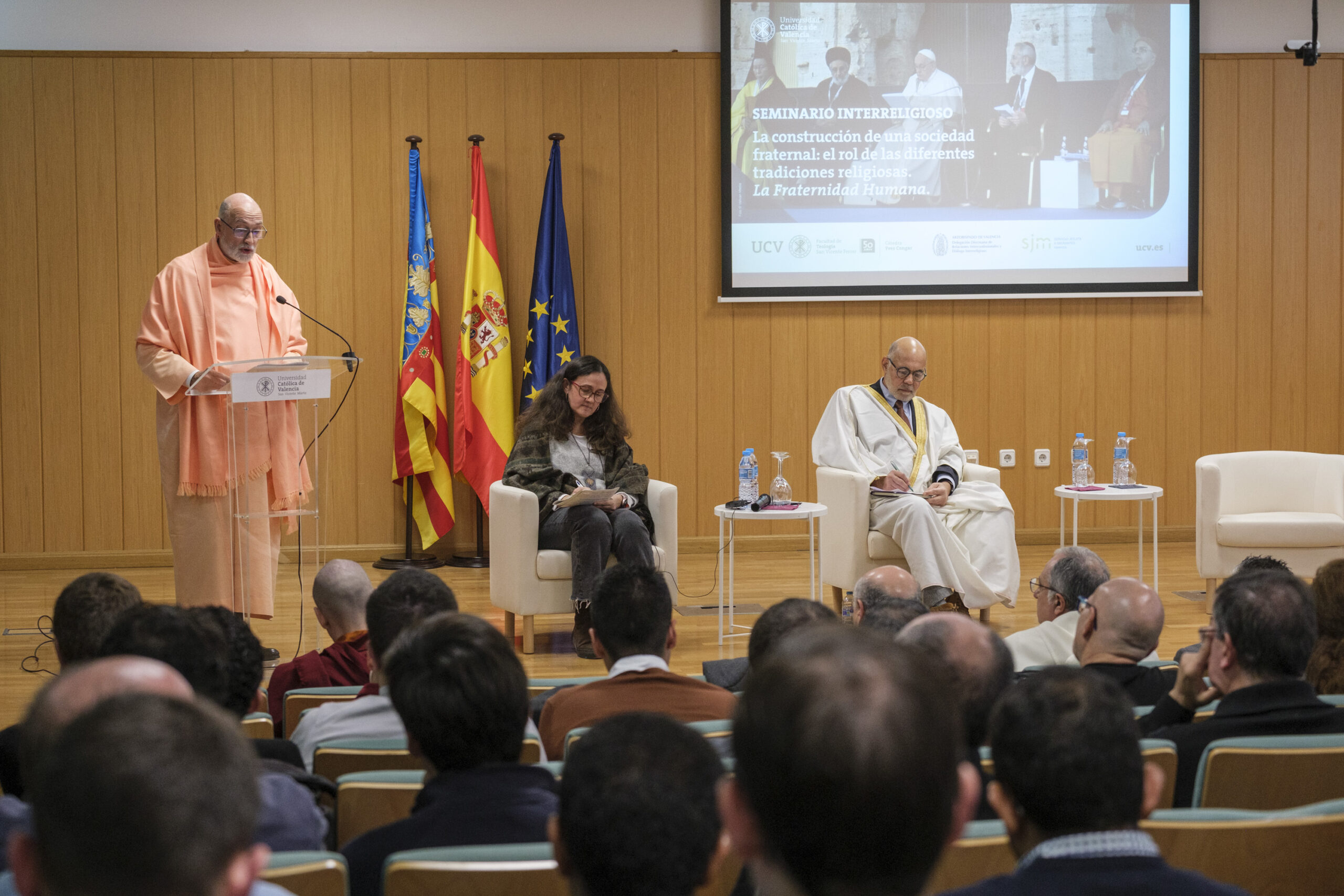 El pasado 11 de diciembre de 2023, H.E. Pujya Swami Rameshwarananda Giri Maharaj, participó en el Seminario Interreligioso “La construcción de una sociedad fraternal: El rol de las diferentes tradiciones religiosas” en la Universidad Católica de Valencia San Vicente Mártir.