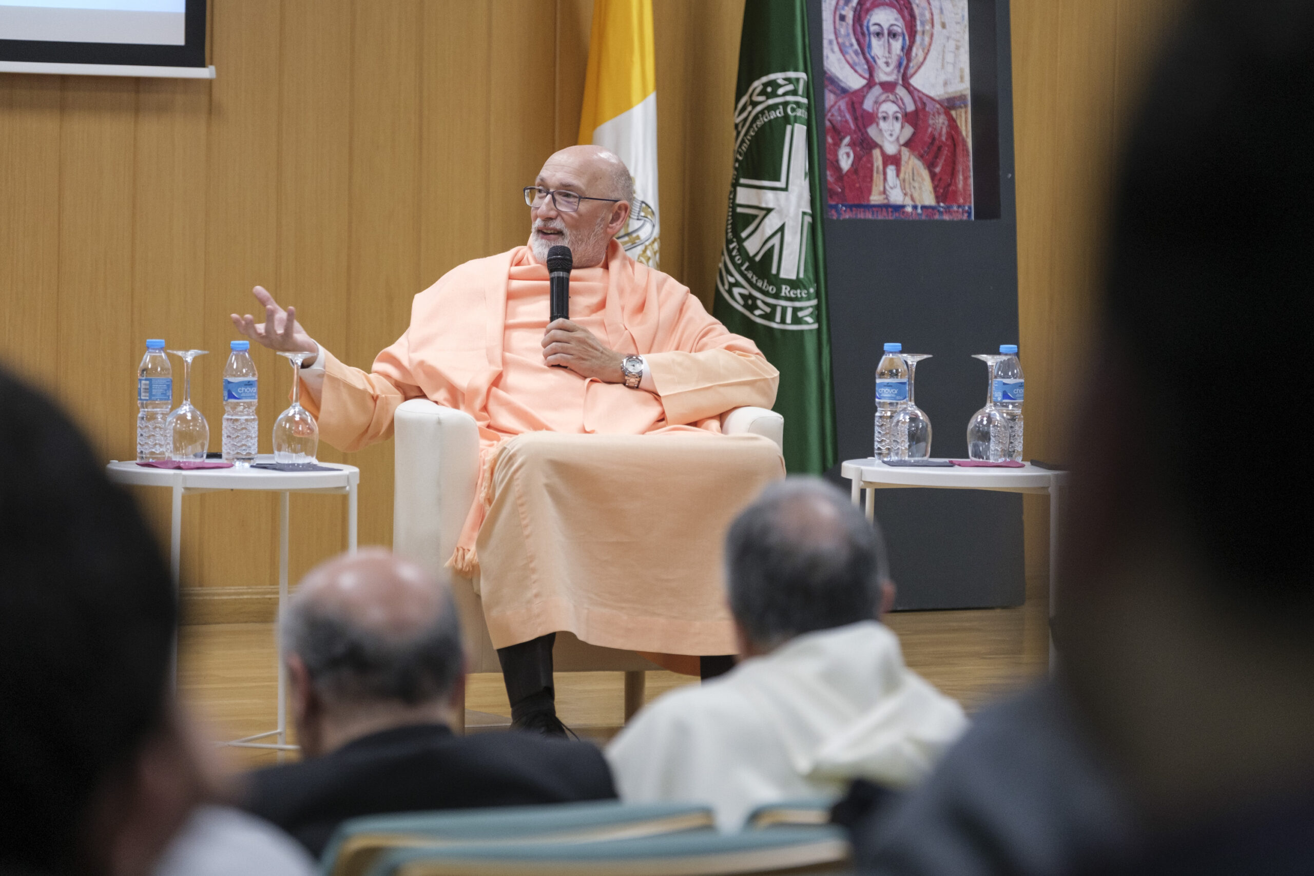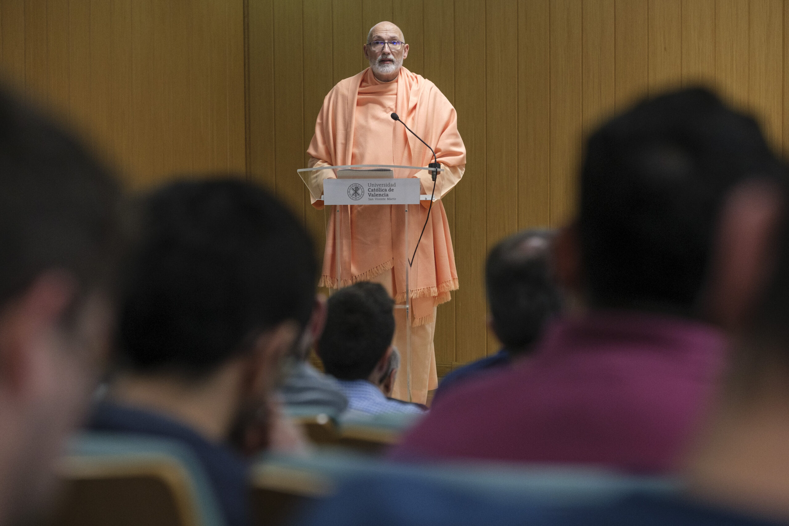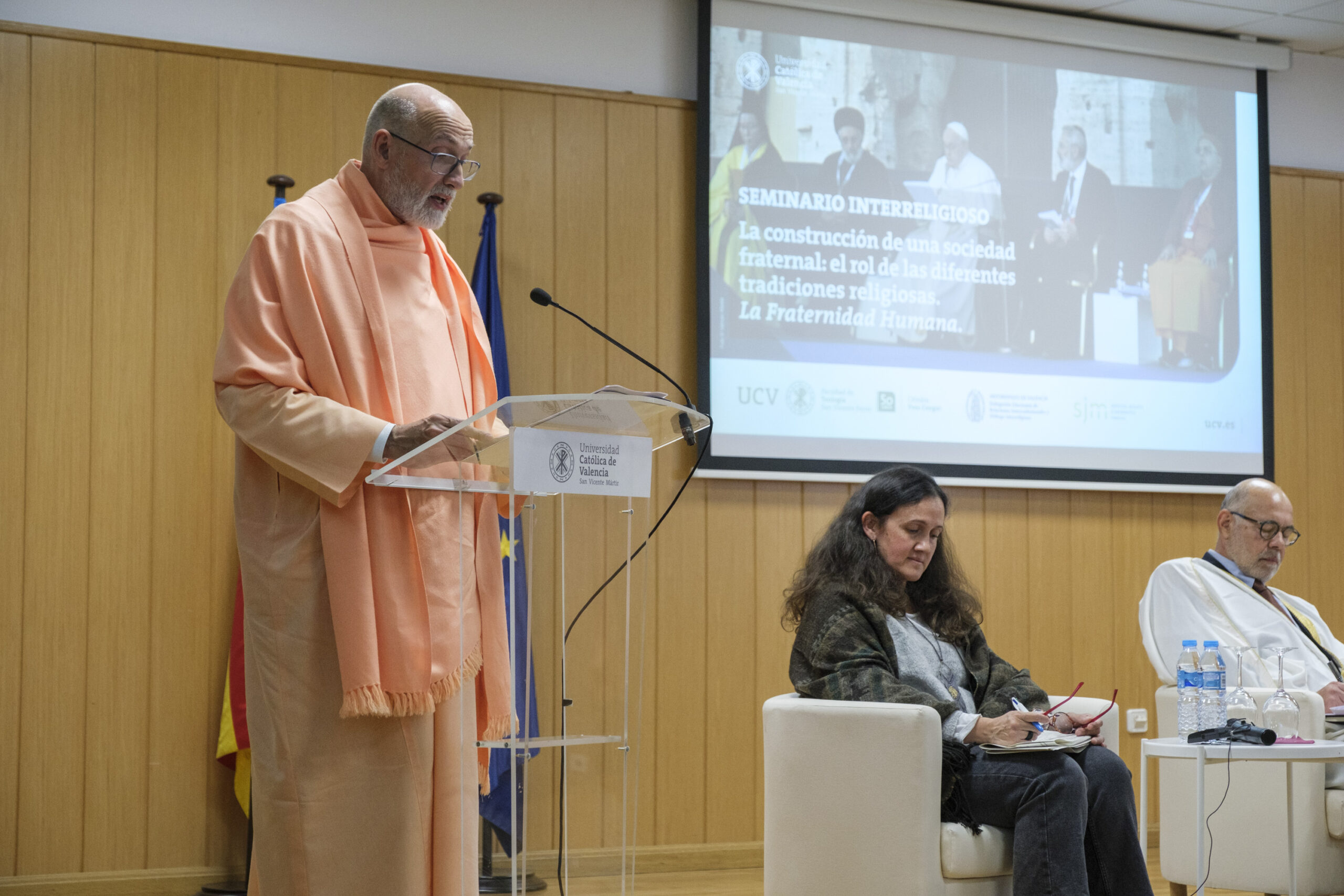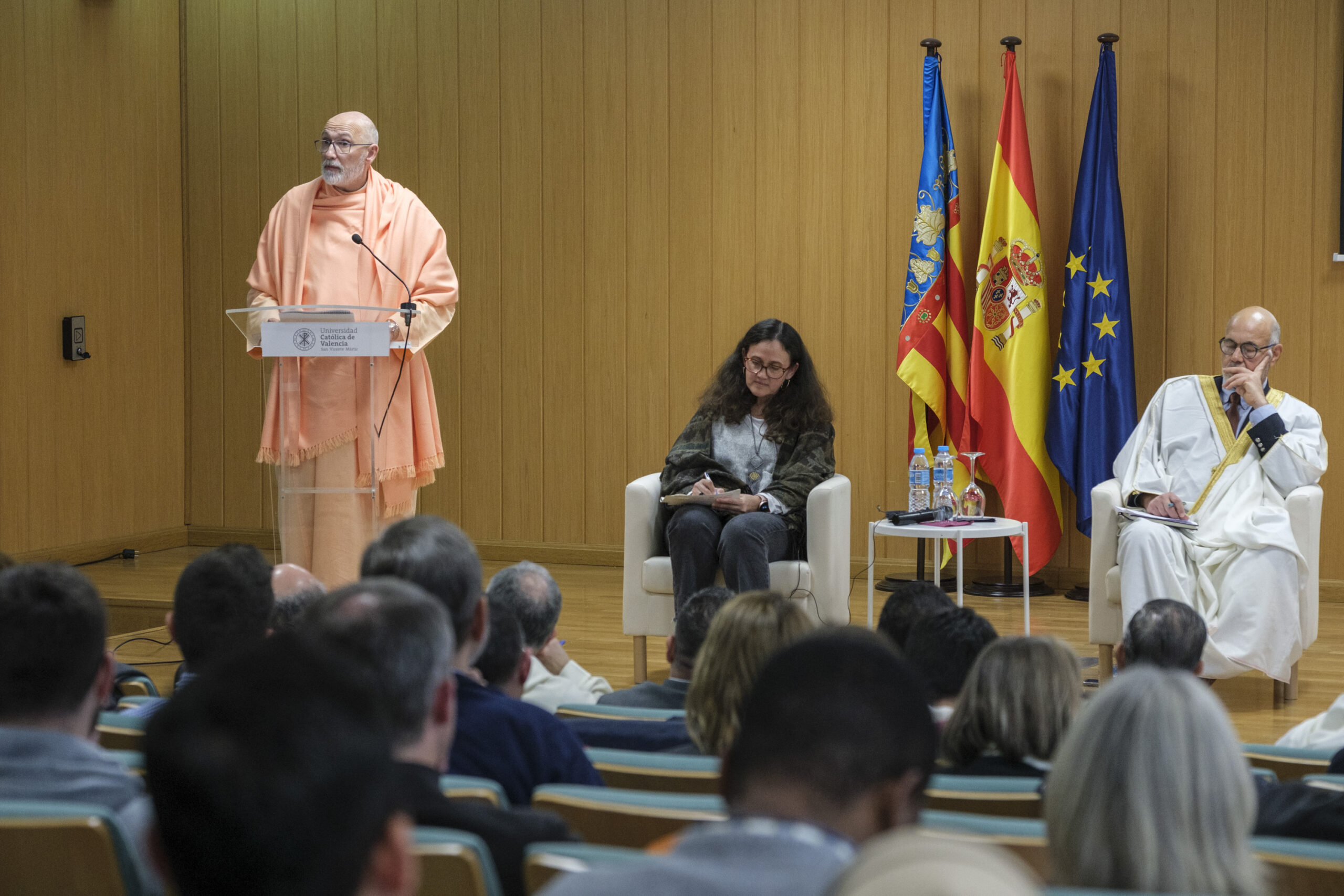 El pasado 11 de diciembre de 2023, H.E. Pujya Swami Rameshwarananda Giri Maharaj, participó en el Seminario Interreligioso “La construcción de una sociedad fraternal: El rol de las diferentes tradiciones religiosas” en la Universidad Católica de Valencia San Vicente Mártir.