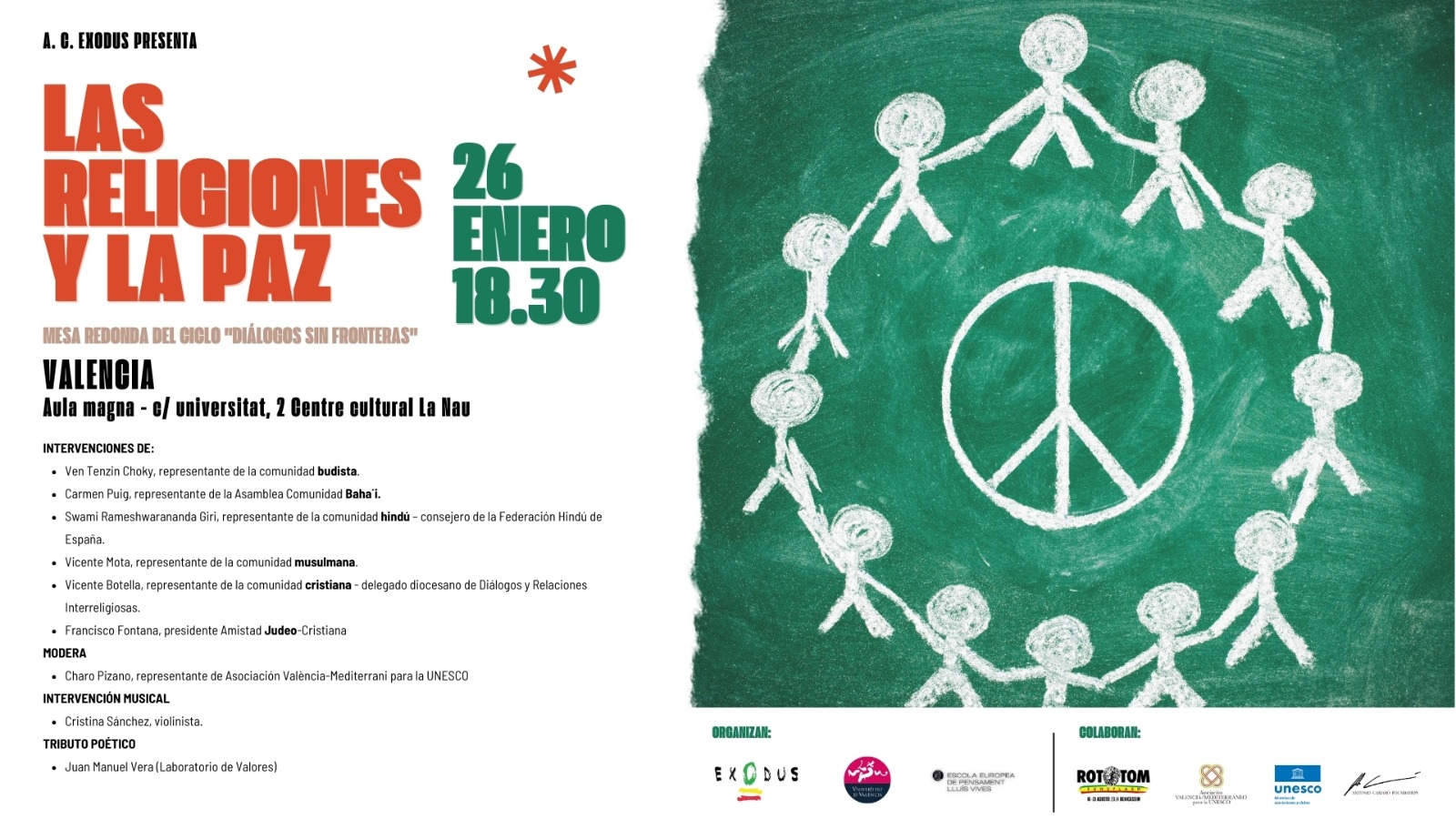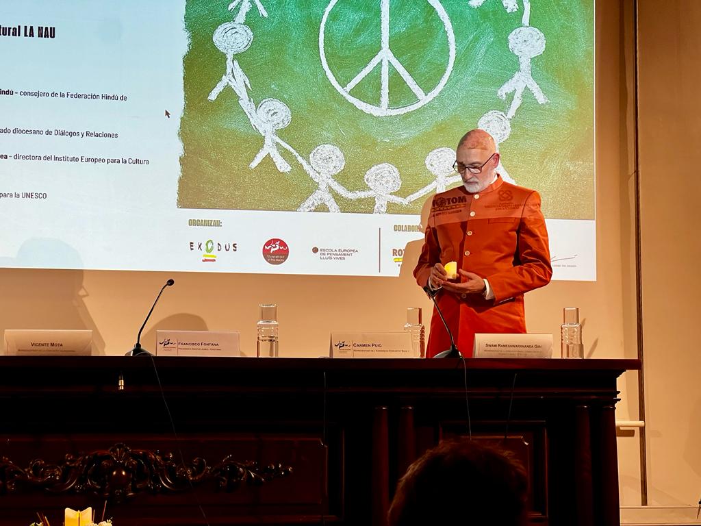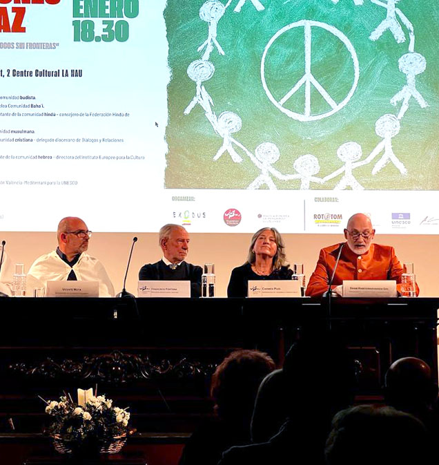 El pasado 26 de enero, Pujya Swami Rameshwarananda Giri participó en la mesa redonda “Las religiones y la Paz” que, dentro del ciclo “Diálogos sin Fronteras, tuvo lugar en el Aula Magna del Centre Cultural La Nau de la Universitat de València.