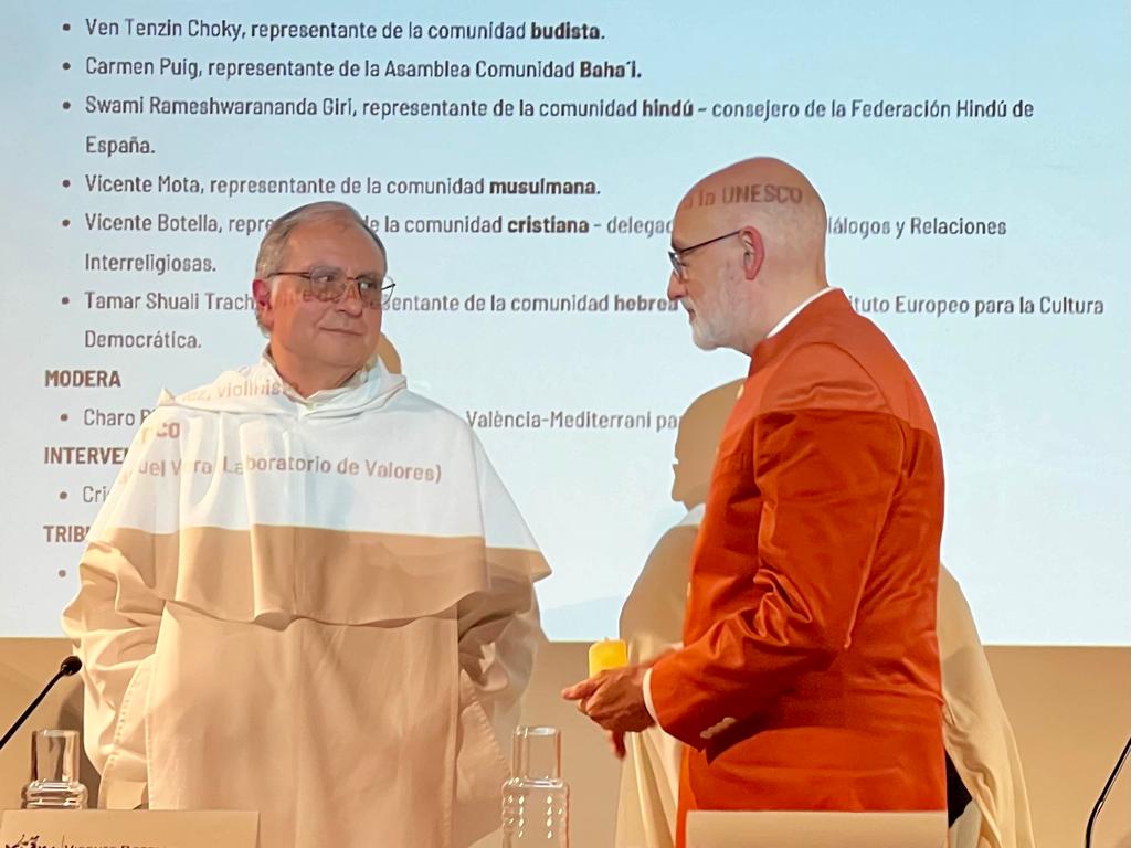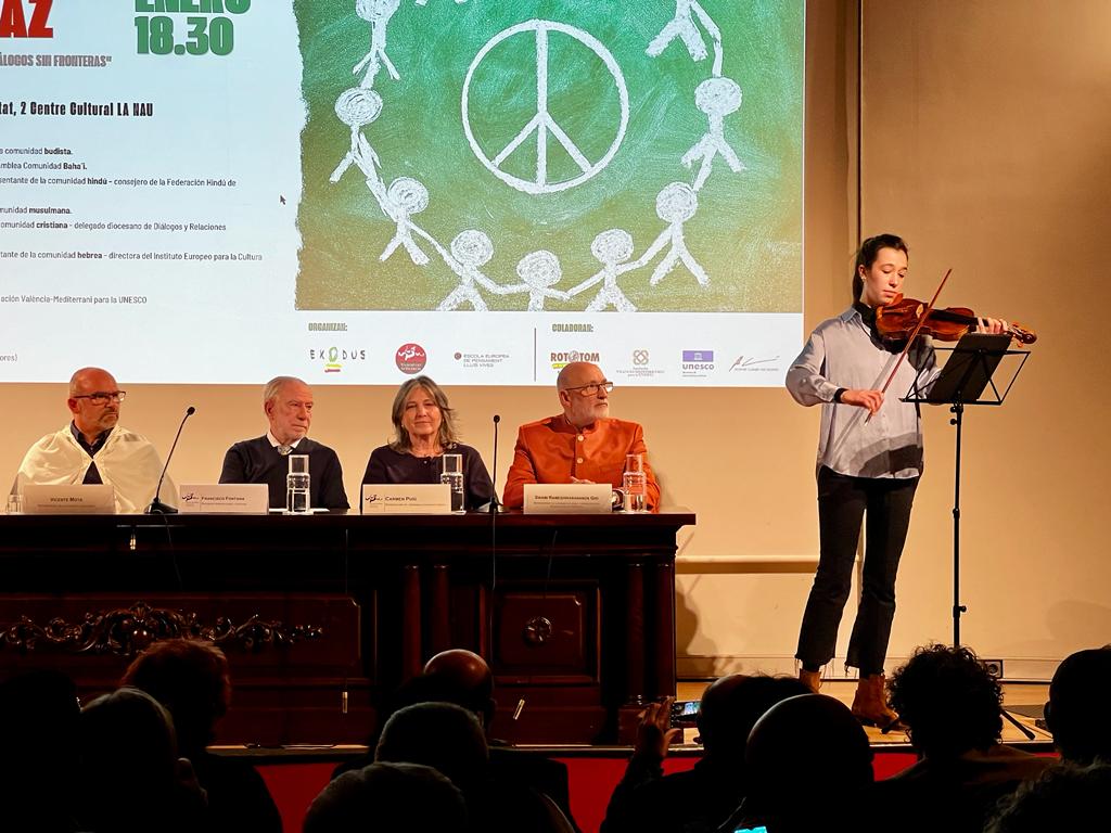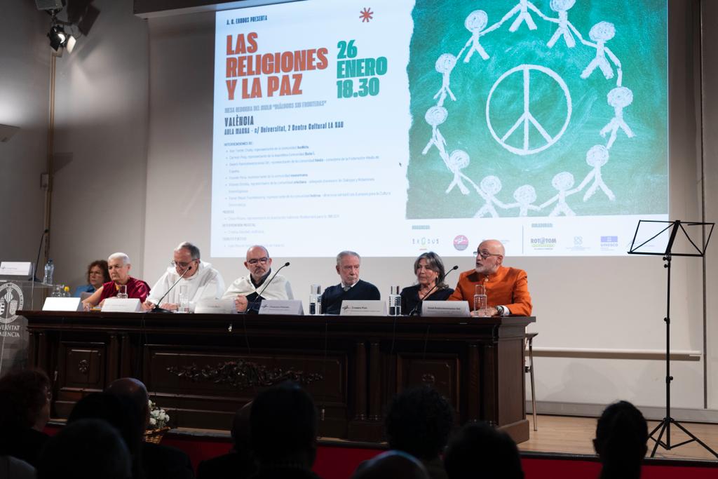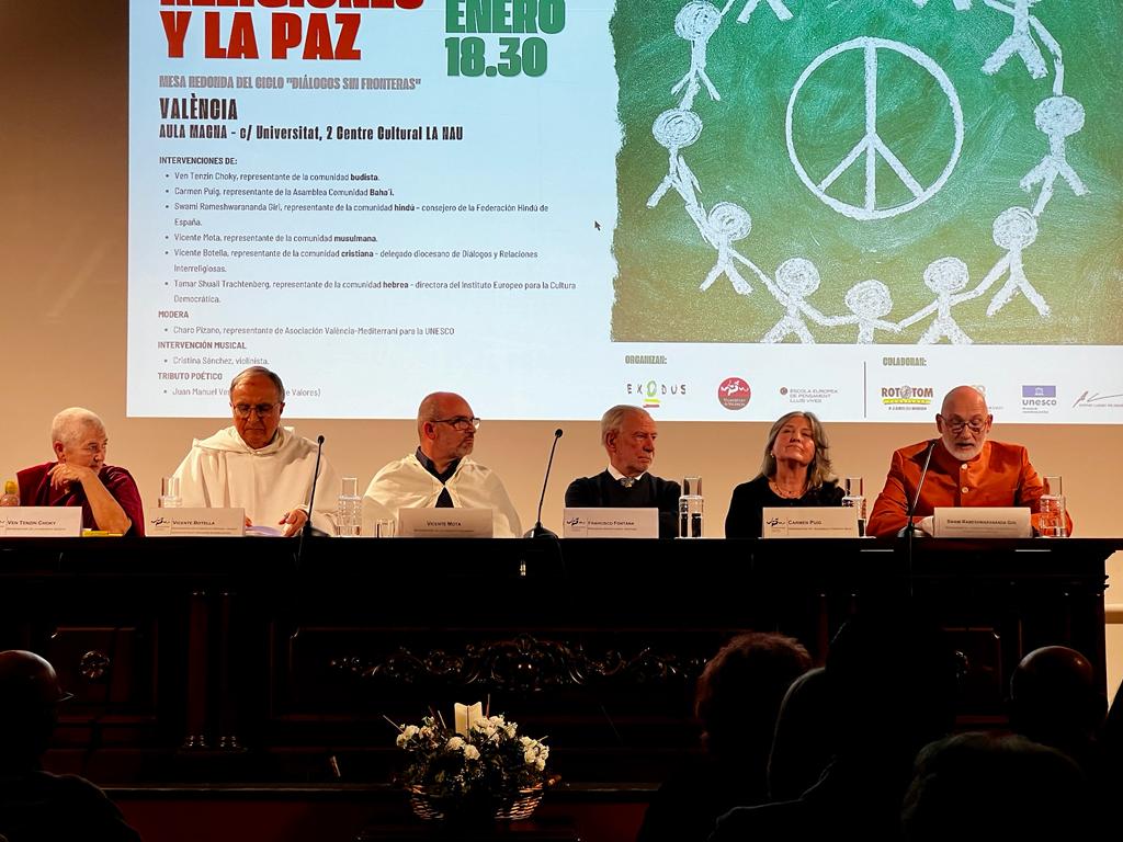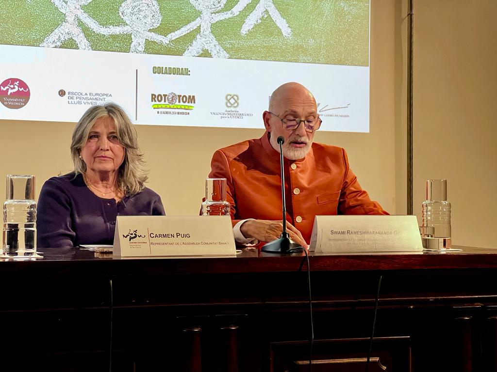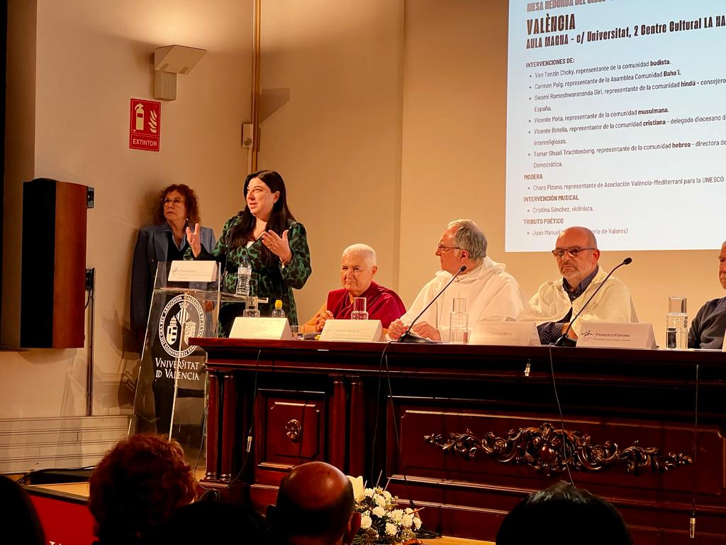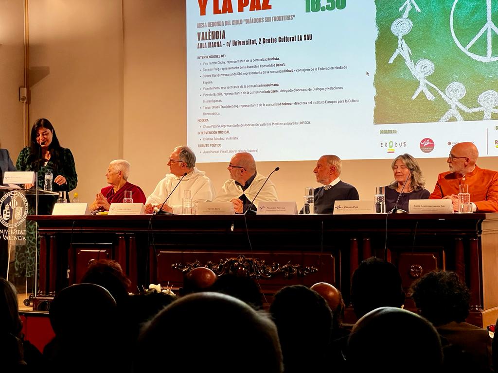 Además de Swami Rameshwarananda, Presidente de Fundación PHI y del Foro Interreligioso Internacional Transcendence, en representación del hinduismo, participaron Vicente Botella, representante de la comunidad cristiana y delegado diocesano de Diálogos y Relaciones Interreligiosas; Mansur Vicente Mota, imán de Valencia, como voz de la comunidad musulmana, Francisco Fontana, presidente de la asociación Amistad Judeo-Cristiana; Venerable Tenzin Choky de la comunidad budista y Carmen Puig, en representación de la Asamblea Comunidad Baha’i. Como moderadora, Charo Pizano, de la Asociación València-Mediterrani para la UNESCO introdujo a cada una de las confesiones.