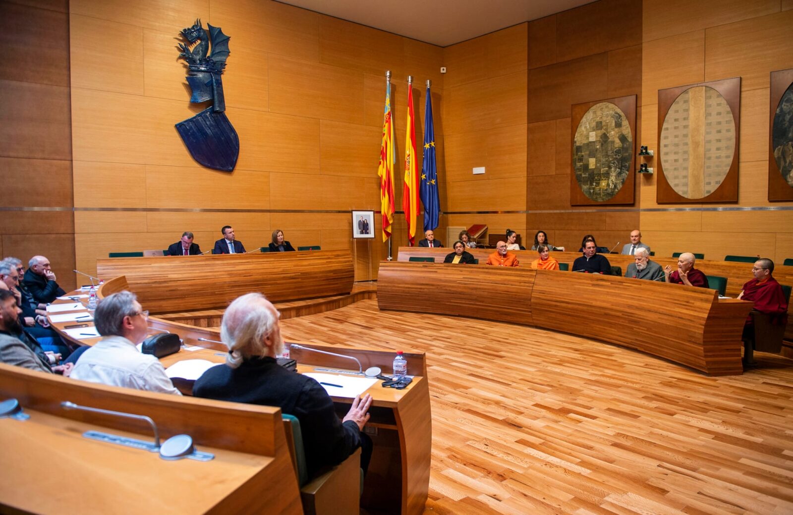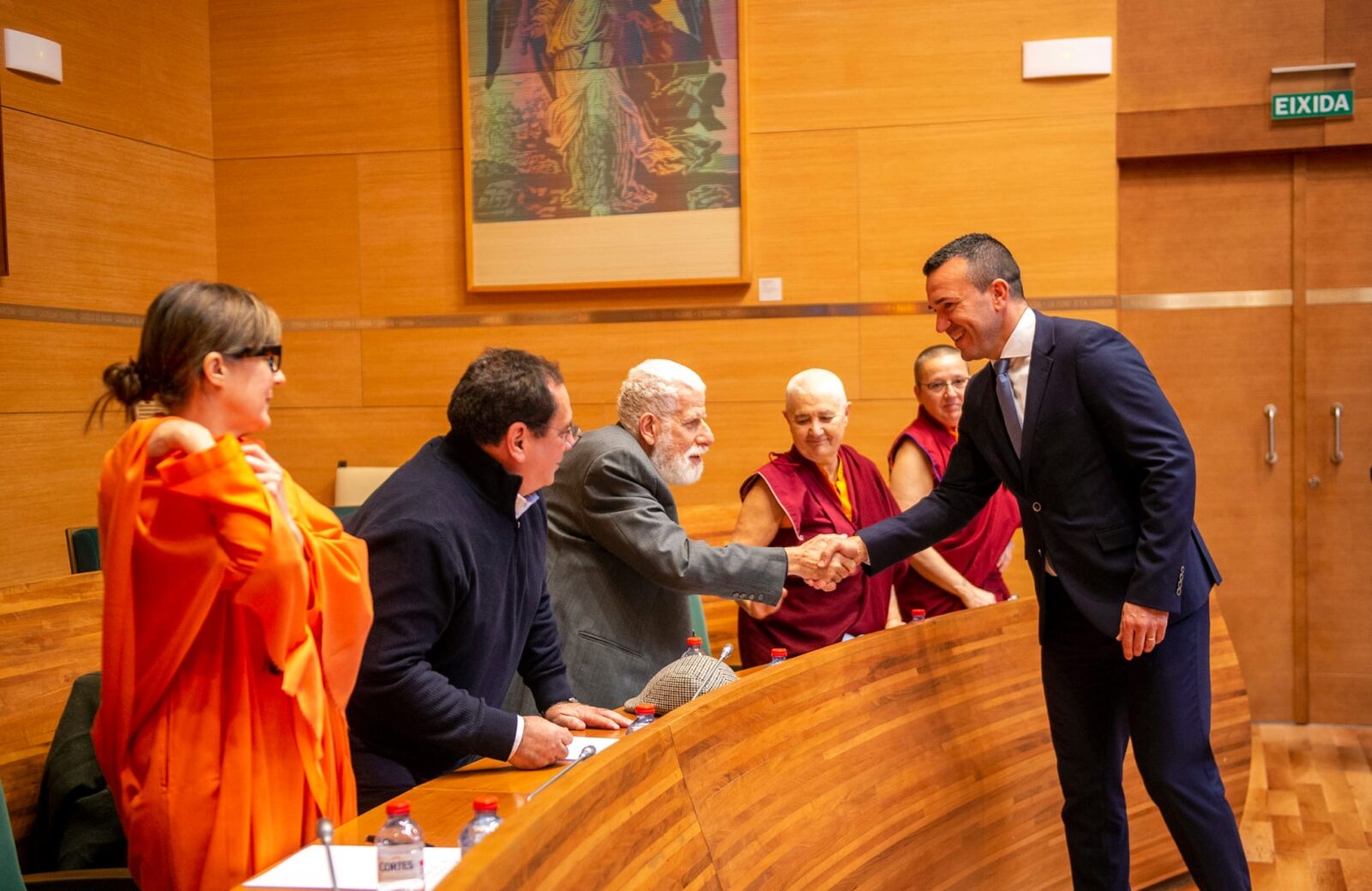 Durante su intervención, H.E. Pujya Swami Rameshwarananda Giri Maharaj, destacó la necesidad de consolidar un marco estable, sereno y constructivo que reconozca el pluralismo religioso como una realidad cotidiana de la sociedad valenciana, y sugirió la creación de una Mesa de Diálogo como instrumento clave de vertebración democrática entre la administración y las comunidades religiosas. Asimismo, subrayó el valor social, cultural y ético —a menudo silencioso— de estas comunidades, especialmente visible en contextos de emergencia, y defendió un diálogo interreligioso entendido como una práctica continuada orientada al bien común. En este sentido, puso el acento en la importancia de que la Mesa impulse acciones concretas, como la elaboración de un mapa actualizado del pluralismo religioso en la Comunitat Valenciana; la creación de grupos de trabajo por áreas (acción social, cultura, educación, atención en espacios públicos y gestión de emergencias); el establecimiento de protocolos claros de interlocución y evaluación; la formación del personal de la administración en materia de diversidad religiosa y la inclusión efectiva de las minorías menos visibles, con el objetivo de fortalecer la convivencia, la cohesión social y la cooperación institucional de manera sostenida.