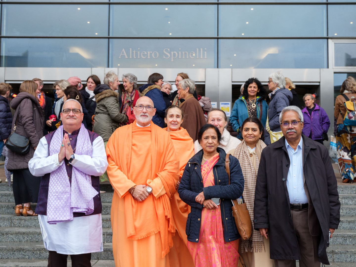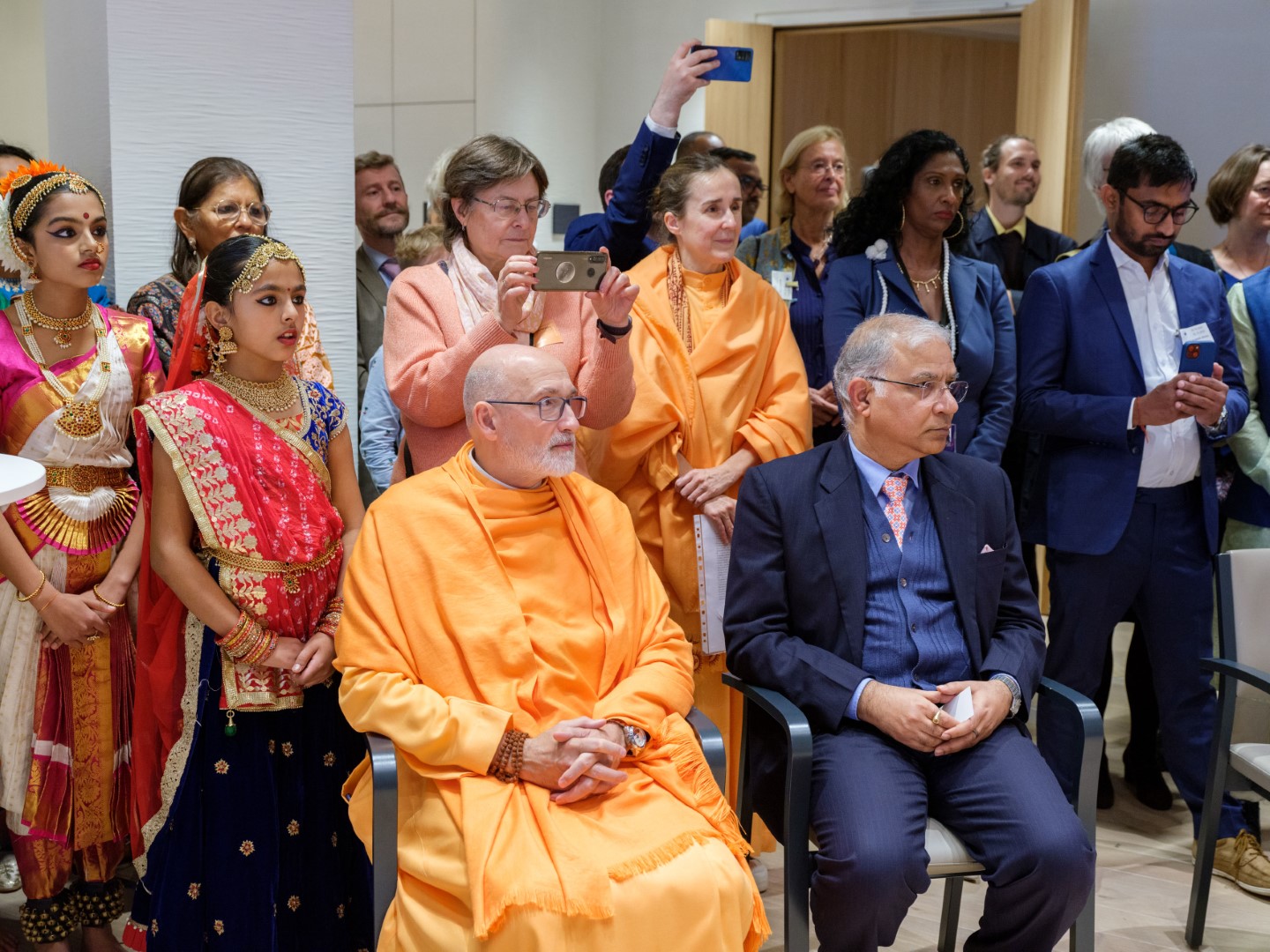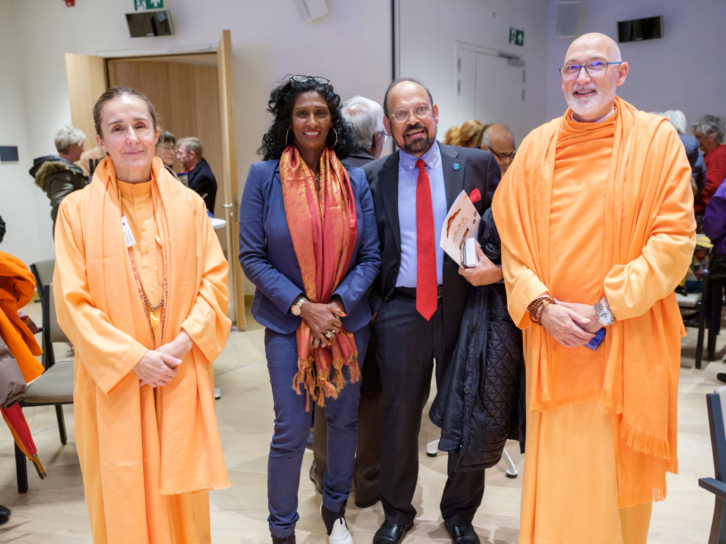 Al acto asistieron distintos representantes de la orden monástica (sannyasa) en Europa, como Pujya Swami Rameshwarananda asesor de la FHE en las relaciones con las administraciones y asesor espiritual del HFE; Swamini Dayananda directora del Centro Vedántico de CampusPHI en Acebo (Cáceres) y Swami Amarananda, director del Centro Vedántico de Ginebra.