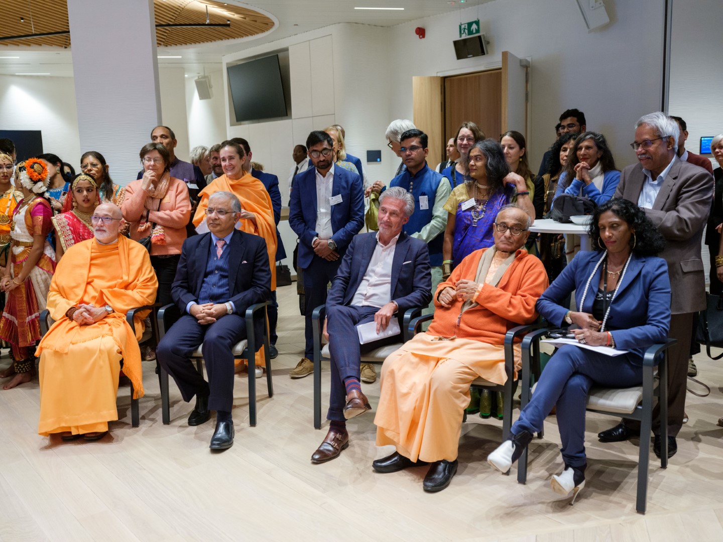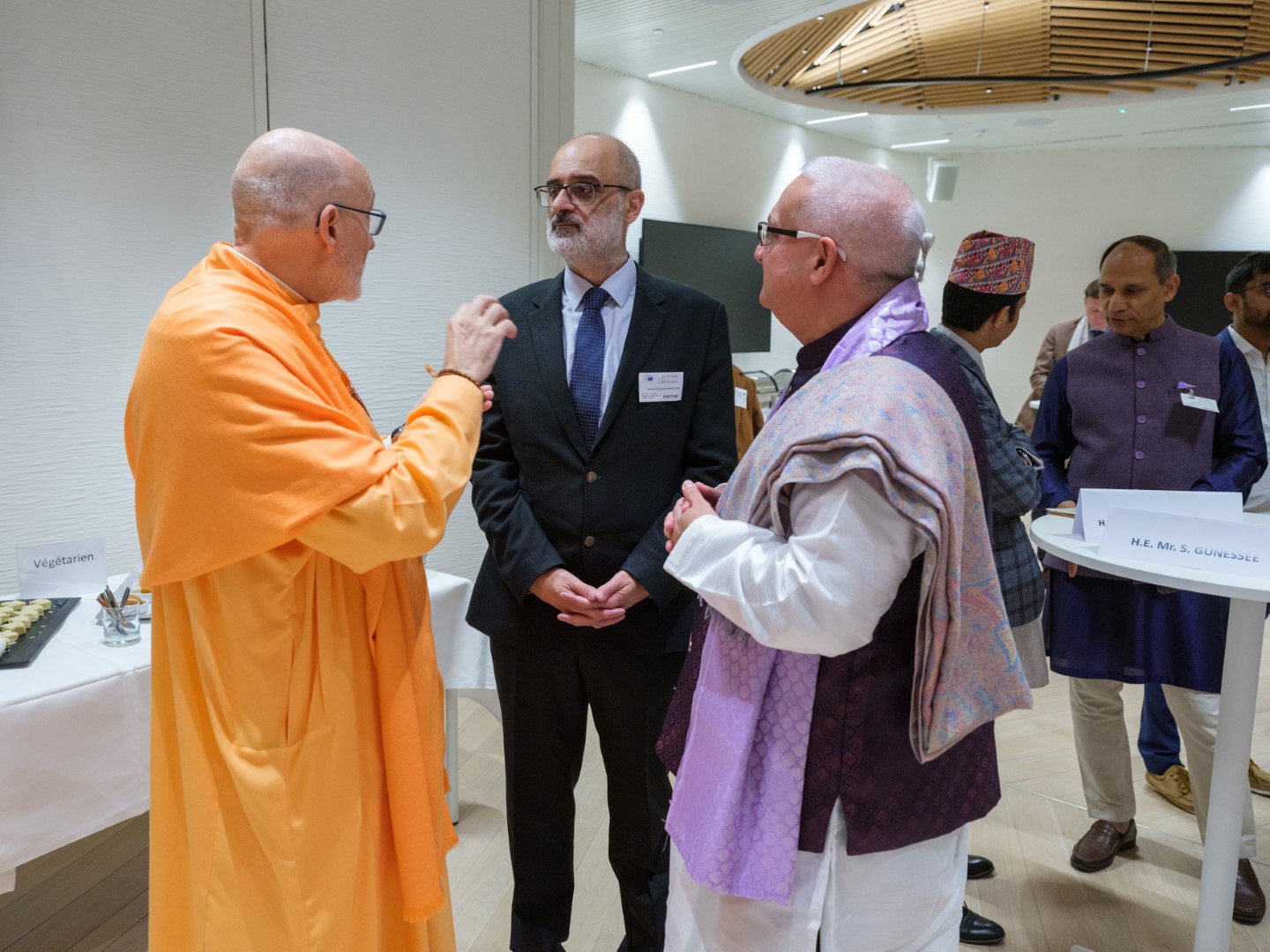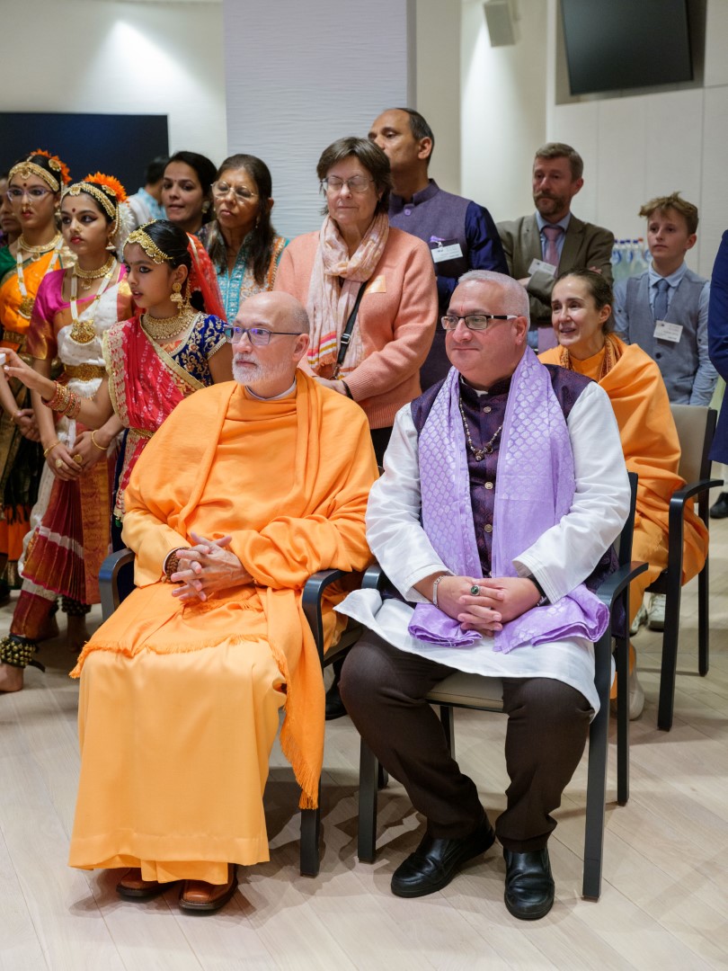 Al acto asistieron distintos representantes de la orden monástica (sannyasa) en Europa, como Pujya Swami Rameshwarananda asesor de la FHE en las relaciones con las administraciones y asesor espiritual del HFE; Swamini Dayananda directora del Centro Vedántico de CampusPHI en Acebo (Cáceres) y Swami Amarananda, director del Centro Vedántico de Ginebra.