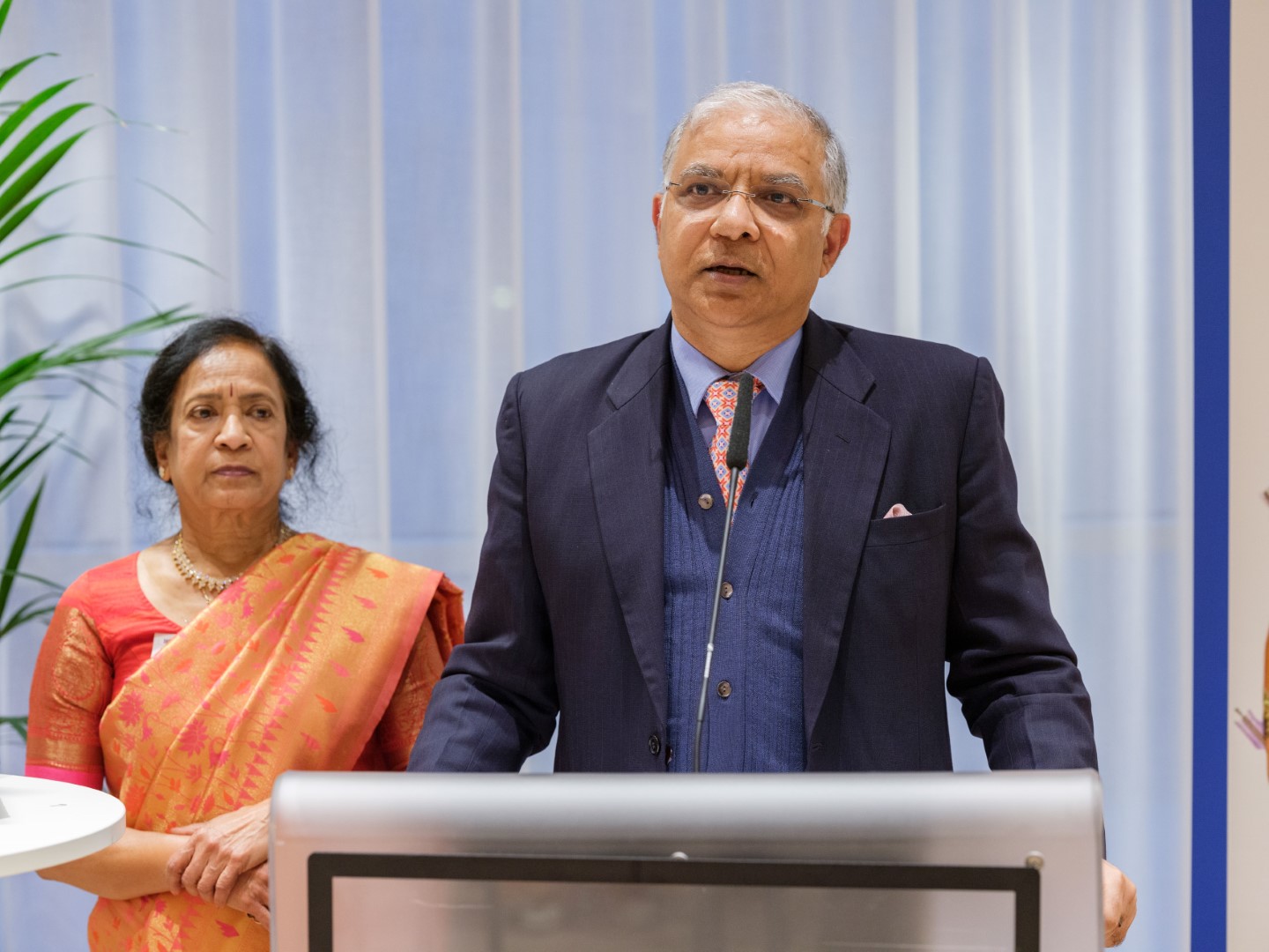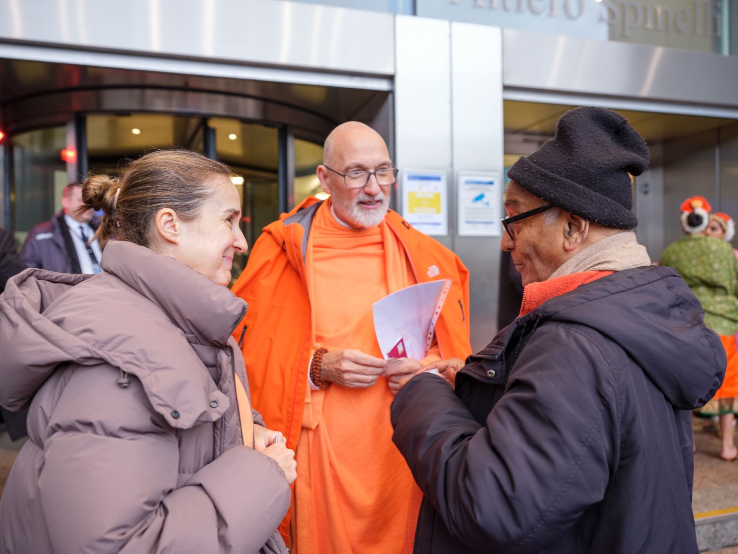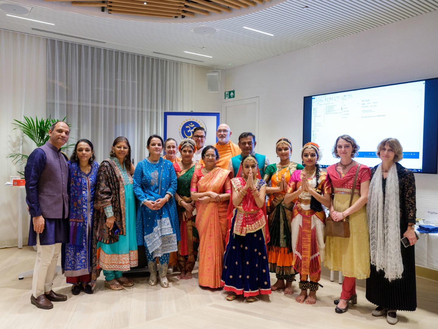 El programa comenzó con un mensaje de bienvenida de la Dra. Lakshmi Vyas, presidenta del HFE. A continuación, Pandit Krishna Kripa Das, Juan Carlos Ramachandani, vicepresidente de la Federación Hindú de España (FHE) entonó oraciones en sánscrito invocando la gracia de los maestros y la consecución de la paz.