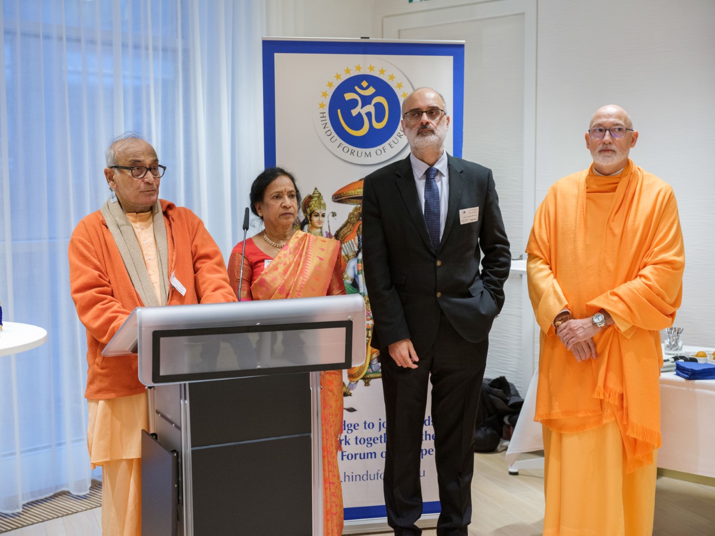 Representantes de las federaciones hindúes de Italia, Bélgica, Francia, Países Bajos y Reino Unido estuvieron presentes en el evento que contó, asimismo, con la participación de varios representantes religiosos, como Iván Arjona director de la Iglesia de Scientology en Europa; Binder Singh, representante de la Comunidad Sikh en Europa y el Dr. Kishan Manocha, representante de la fe Bahai y director del departamento de Derechos Humanos e Instituciones Democrática de la OSCE (Organización para la Seguridad y la Cooperación en Europa).