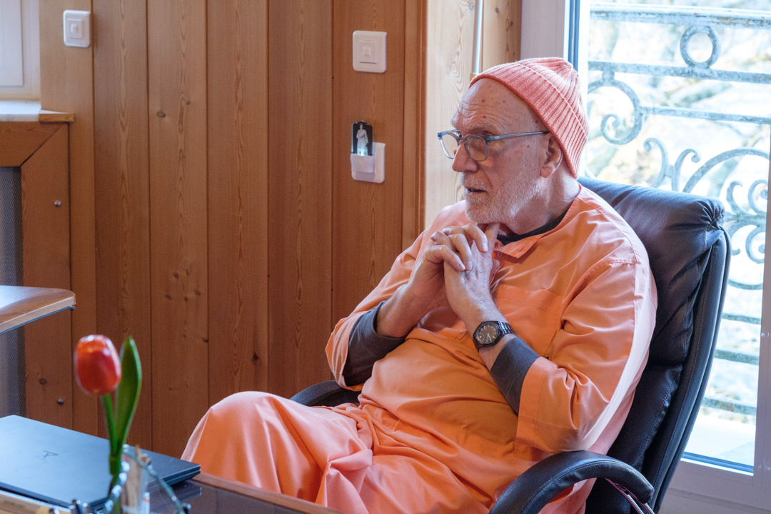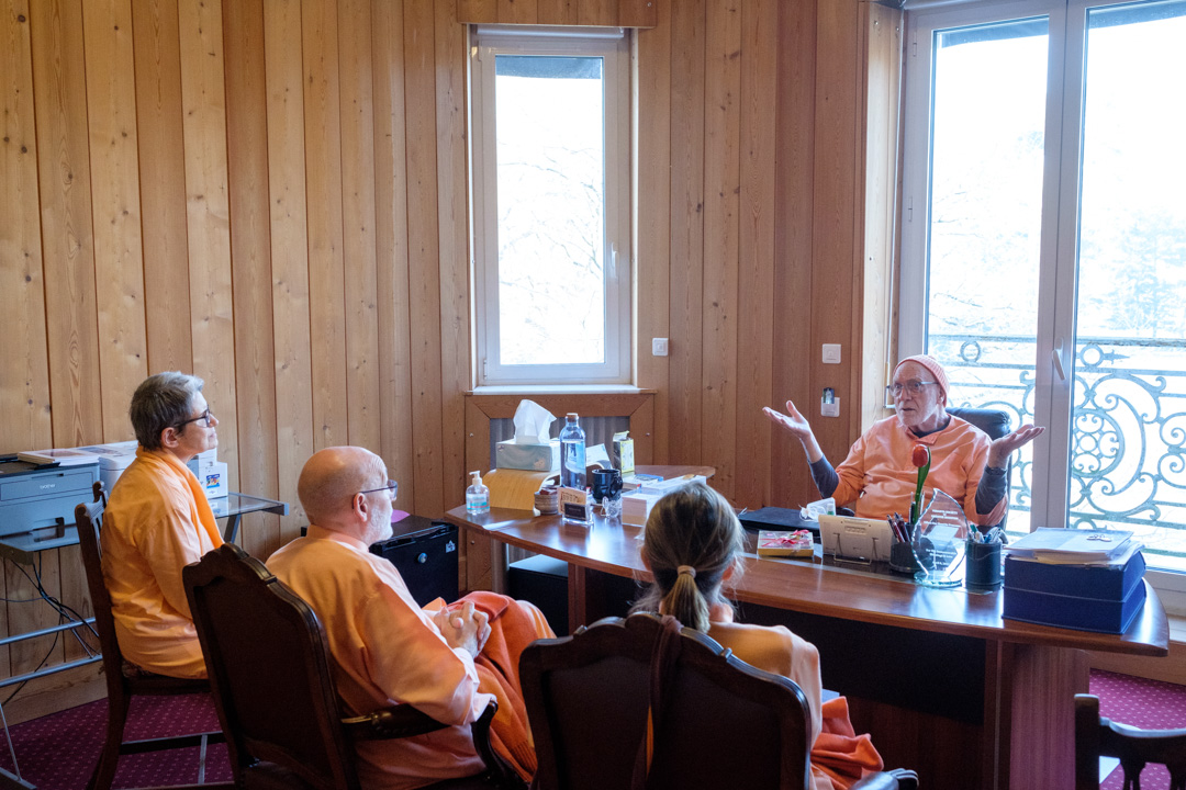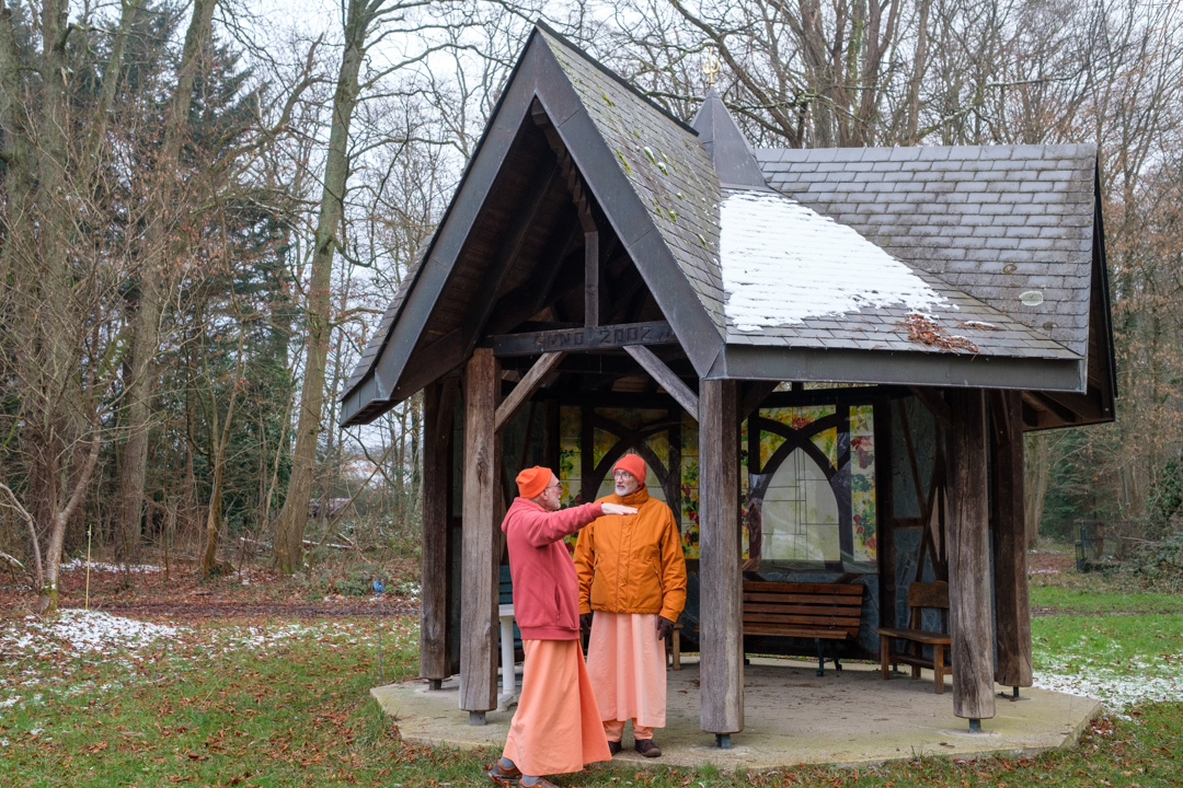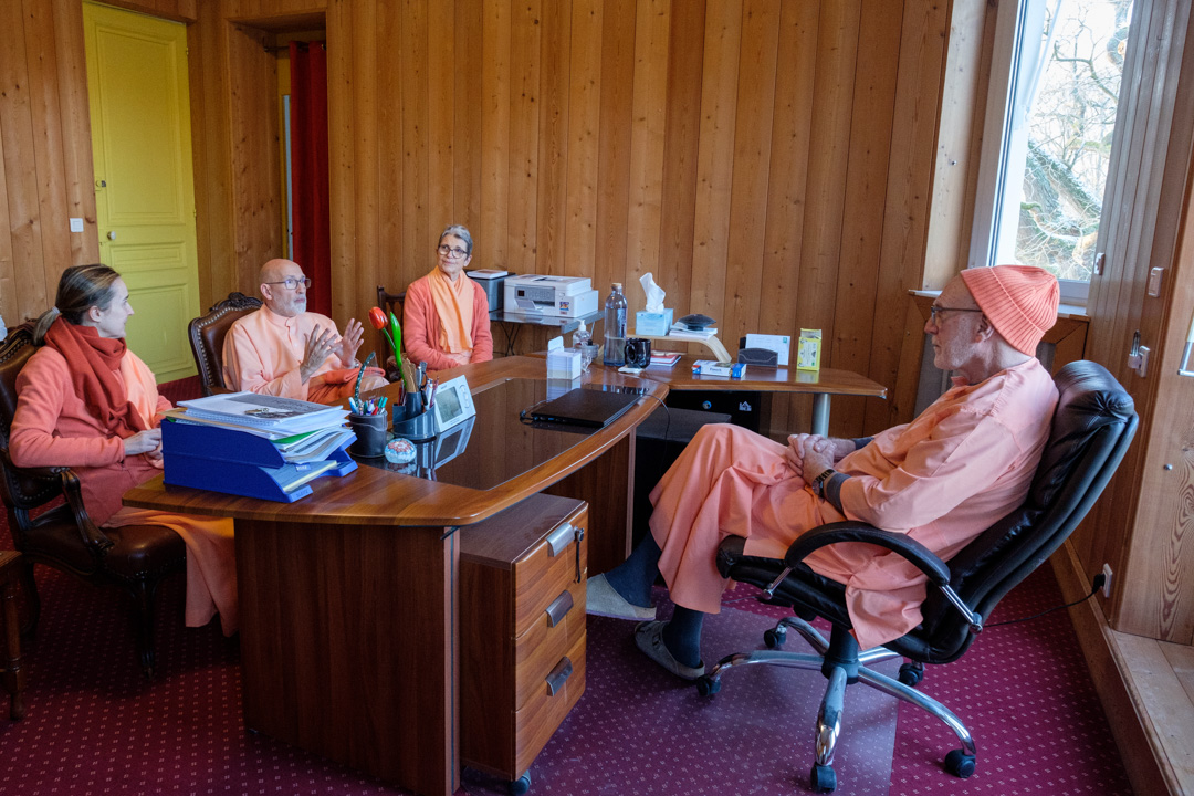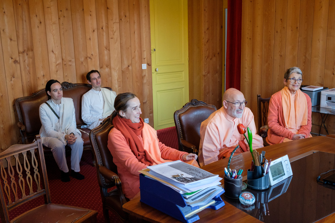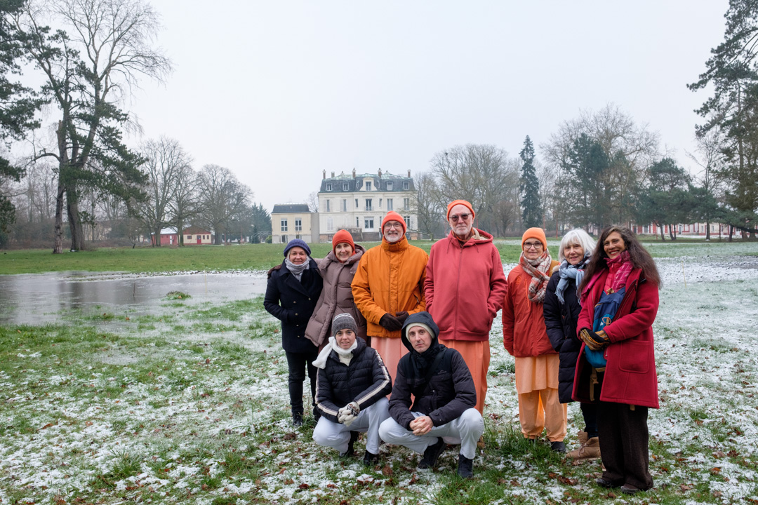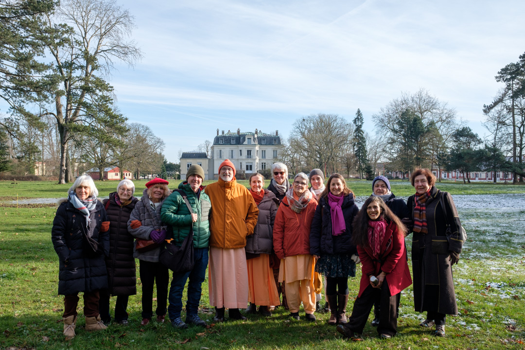 El grupo fue recibido por Swami Atmarupananda que mostró las instalaciones del edificio principal del centro, así como los exteriores y las diferentes construcciones y terrenos que conforman el Centro Vedántico de París.